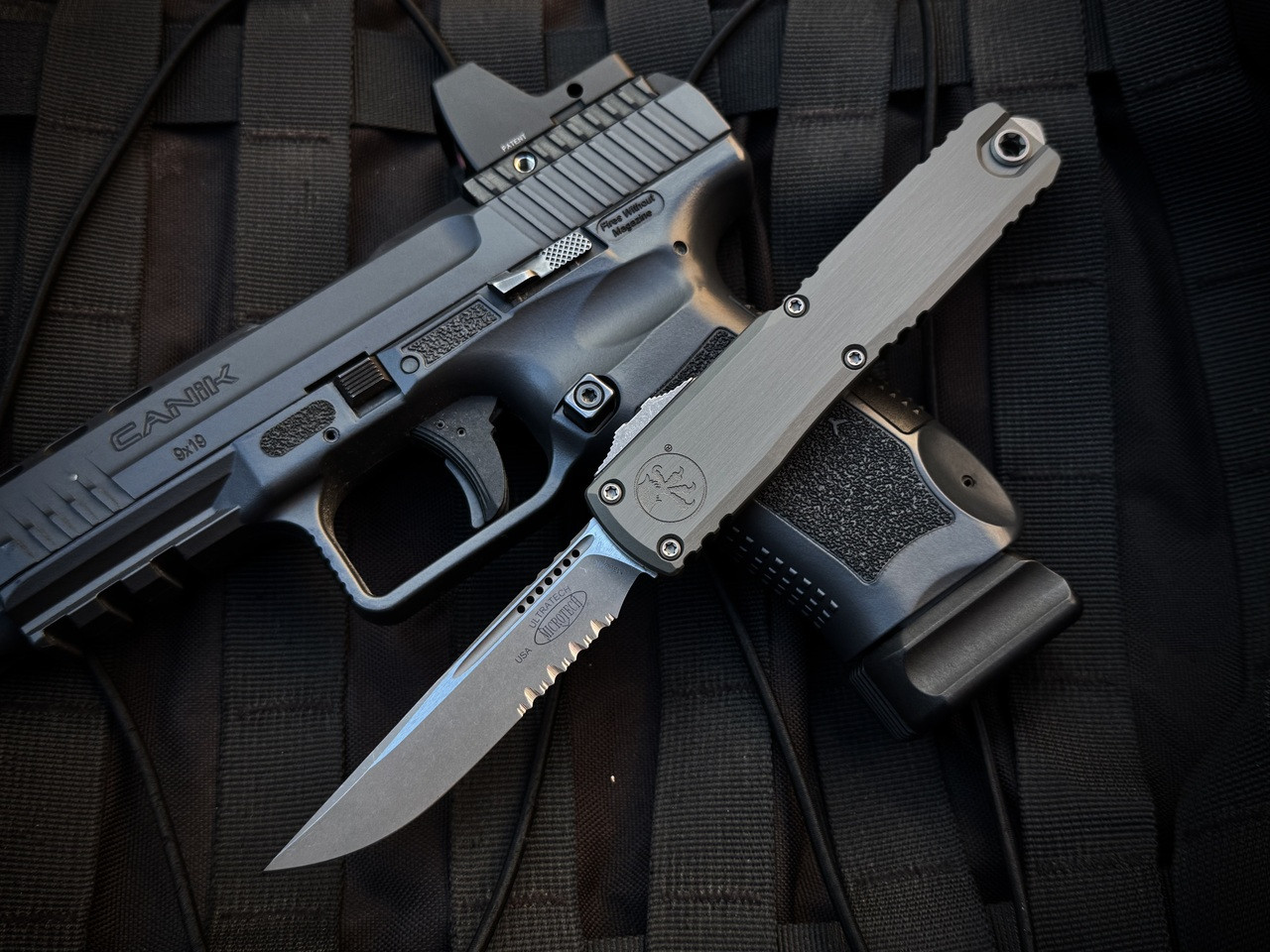 Microtech Ultratech S/E Gen III Zero Blade Play Natural Clear Anodized Aluminum Body w/ M390MK Apocalyptic Partially Serrated Blade (3.5") 1121-11APNC