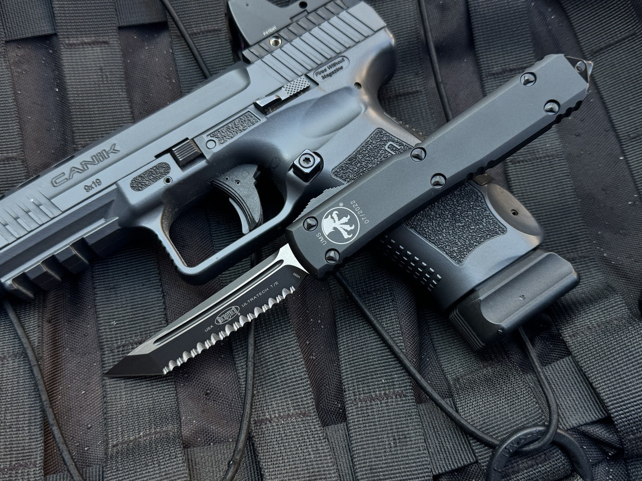 Microtech Ultratech UMS T/E Black Tactical Aluminum Body w/ Black Tactical Full Serrated Blade (3.4") 123-3UMS