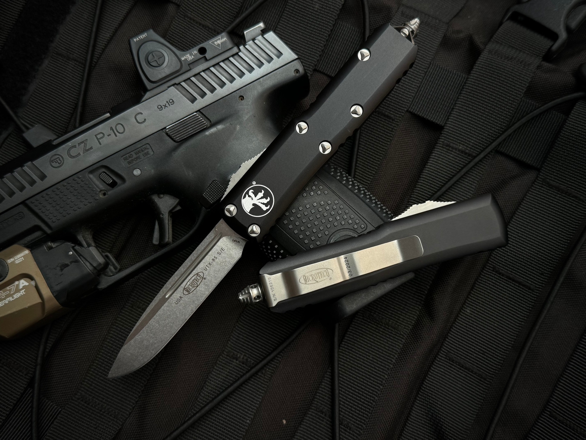 Microtech UTX-85 S/E Black Aluminum Body w/ Stonewashed Plain Edge Blade (3.1") 231-10