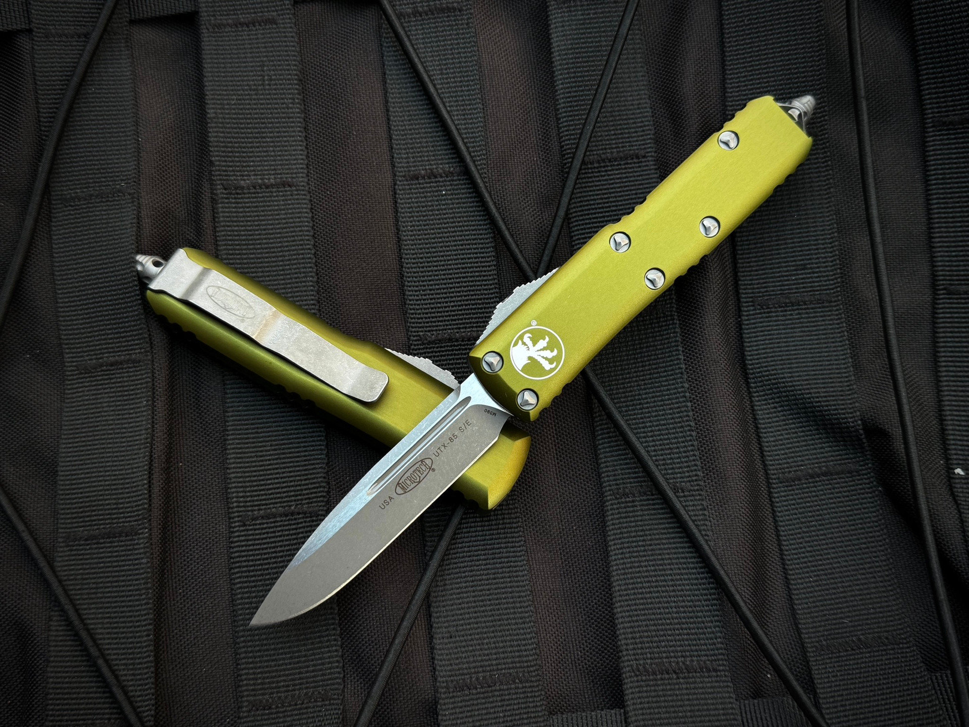 Microtech UTX-85 S/E OD Green Aluminum Body w/ Apocalyptic Plain Edge Blade (3.1") 231-10APOD