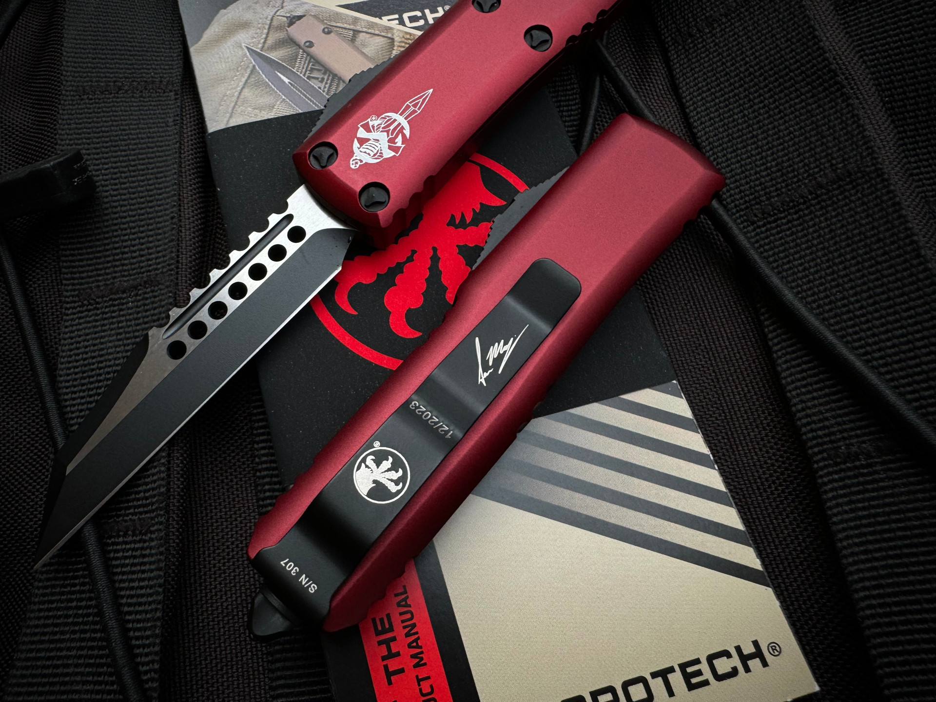 Microtech UTX-85 Warhound Merlot Aluminum Body w/ Black Plain Edge Blade (3.1") 719W-1MRS