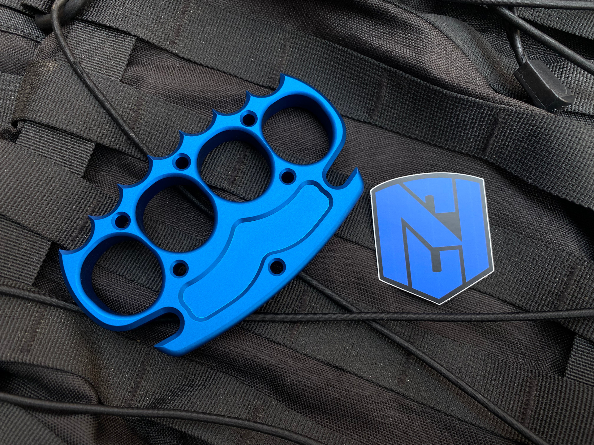 NCC Knives Spiked Grapnel Knuckles Blue Anodized T6 Aluminum