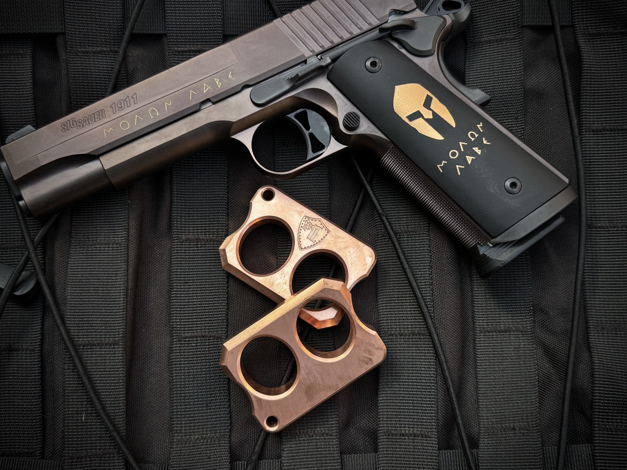 These are a two hole set of knuckles with a lanyard hole.