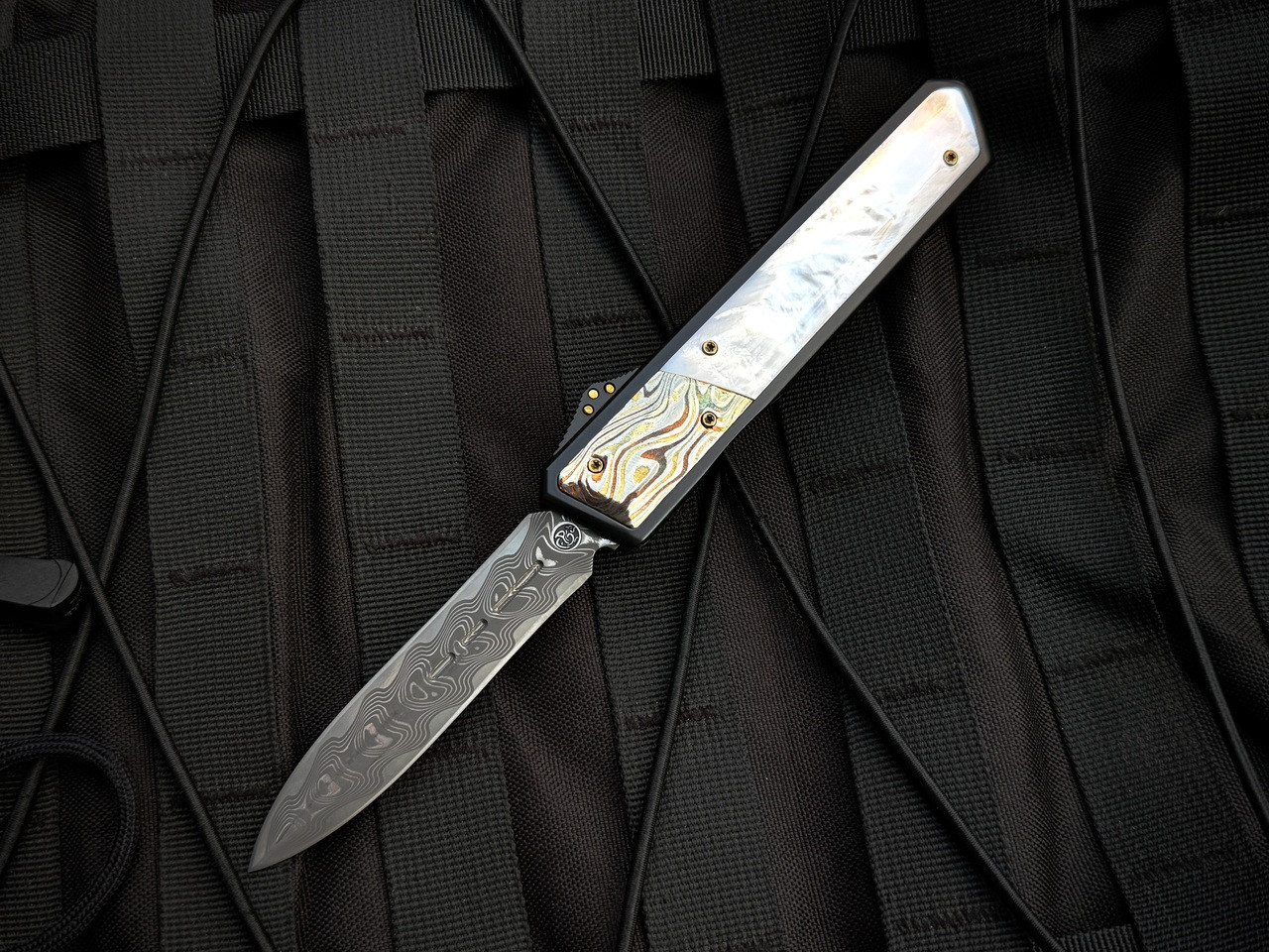 Patrick Famin Custom DOTF Auto Black Aluminum Body w/ Mother of Pearl Scales, Zirco Bronze Copper Nichols Mokume Bolster, and F