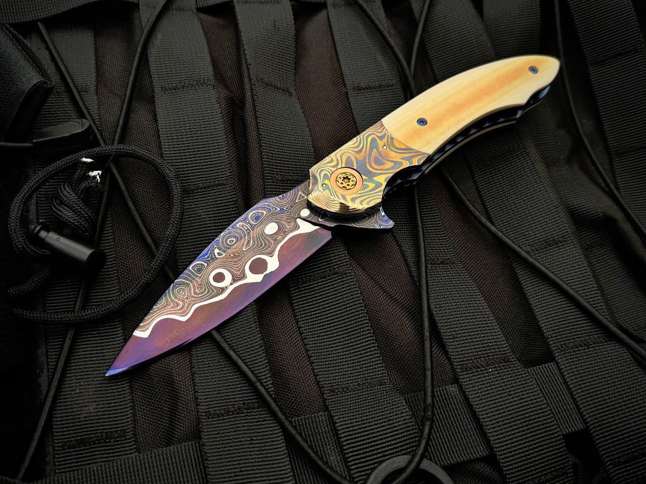 Peter Martin XRS Custom Flipper Westinghouse Micarta Scales and Mokume Bolster w/ Zircuti Pocket Clip and Lava Lamp Damascus Pl