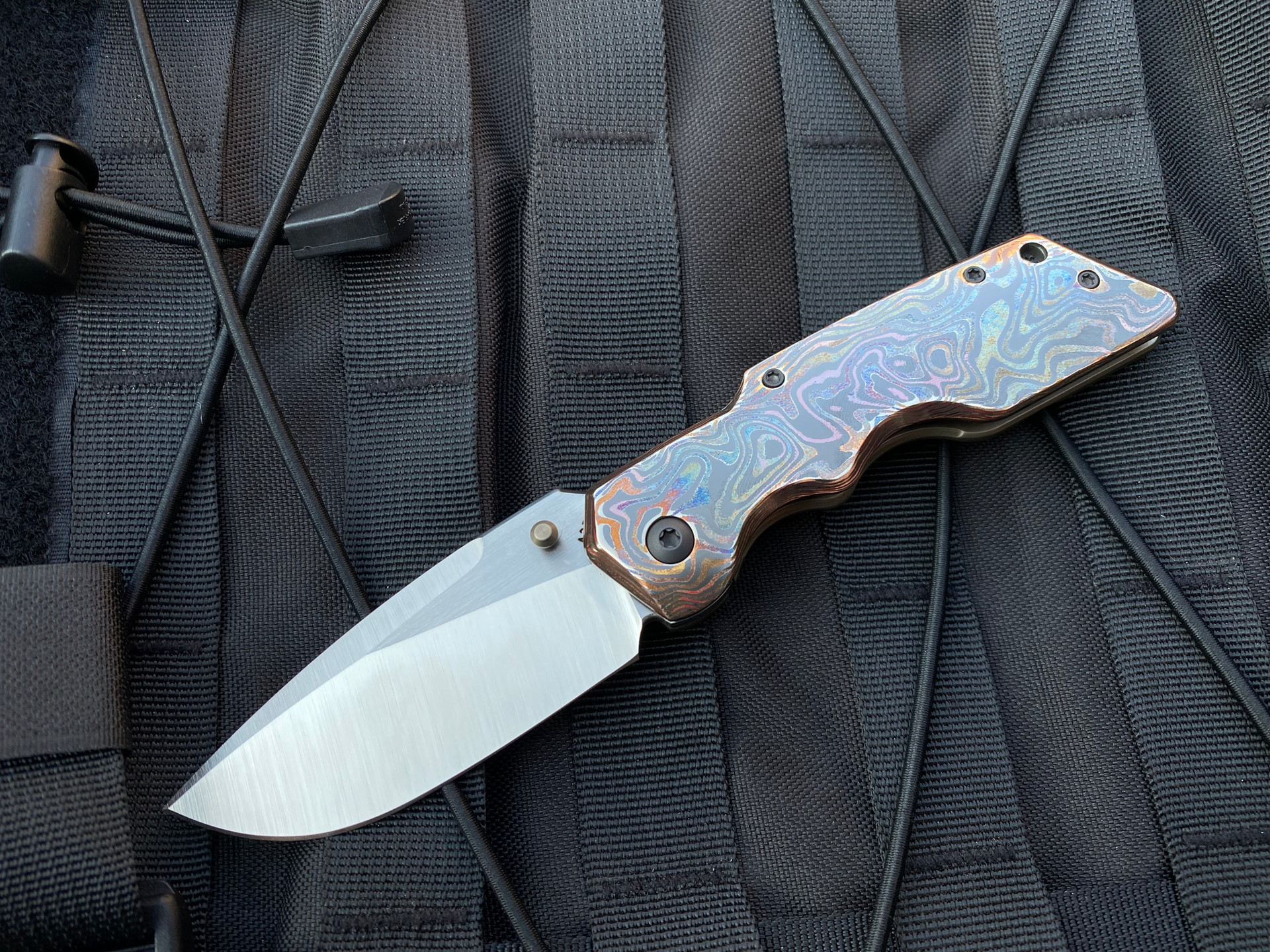 Attention2Detail MK1 Medium Folder Mokume and Titanium Body w/ Zirc Pocket Clip and Magnacut Satin Plain Edge Blade