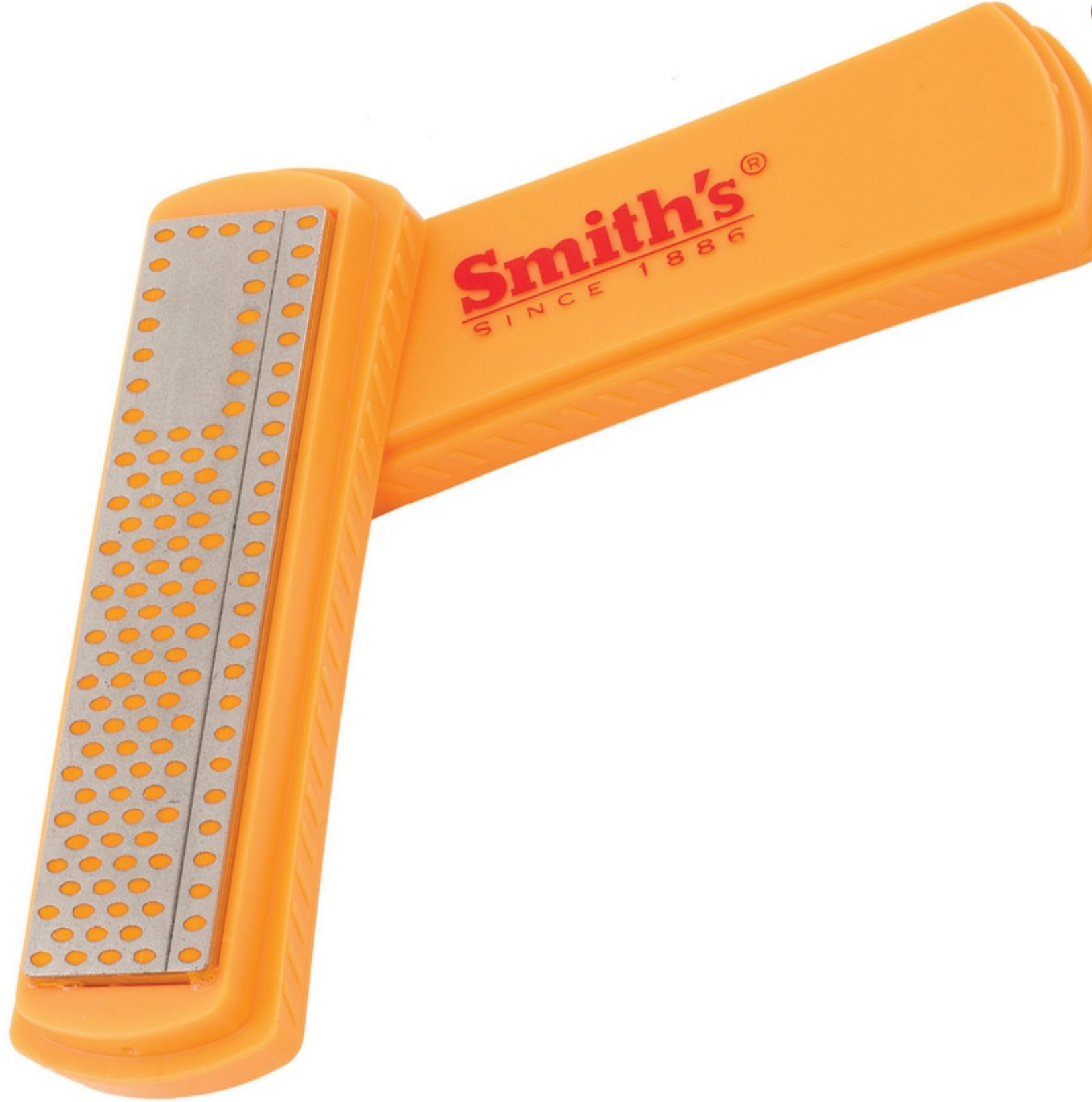 Coarse (325) grit diamond coated surface. Interrupted surface speeds sharpening. Cover doubles as base extension. Straight-line sharpening groove for hooks and pointed tools. Micro-Tool Sharpening Pad for knife blade tips and tools. Stone size: 4" x 1".
