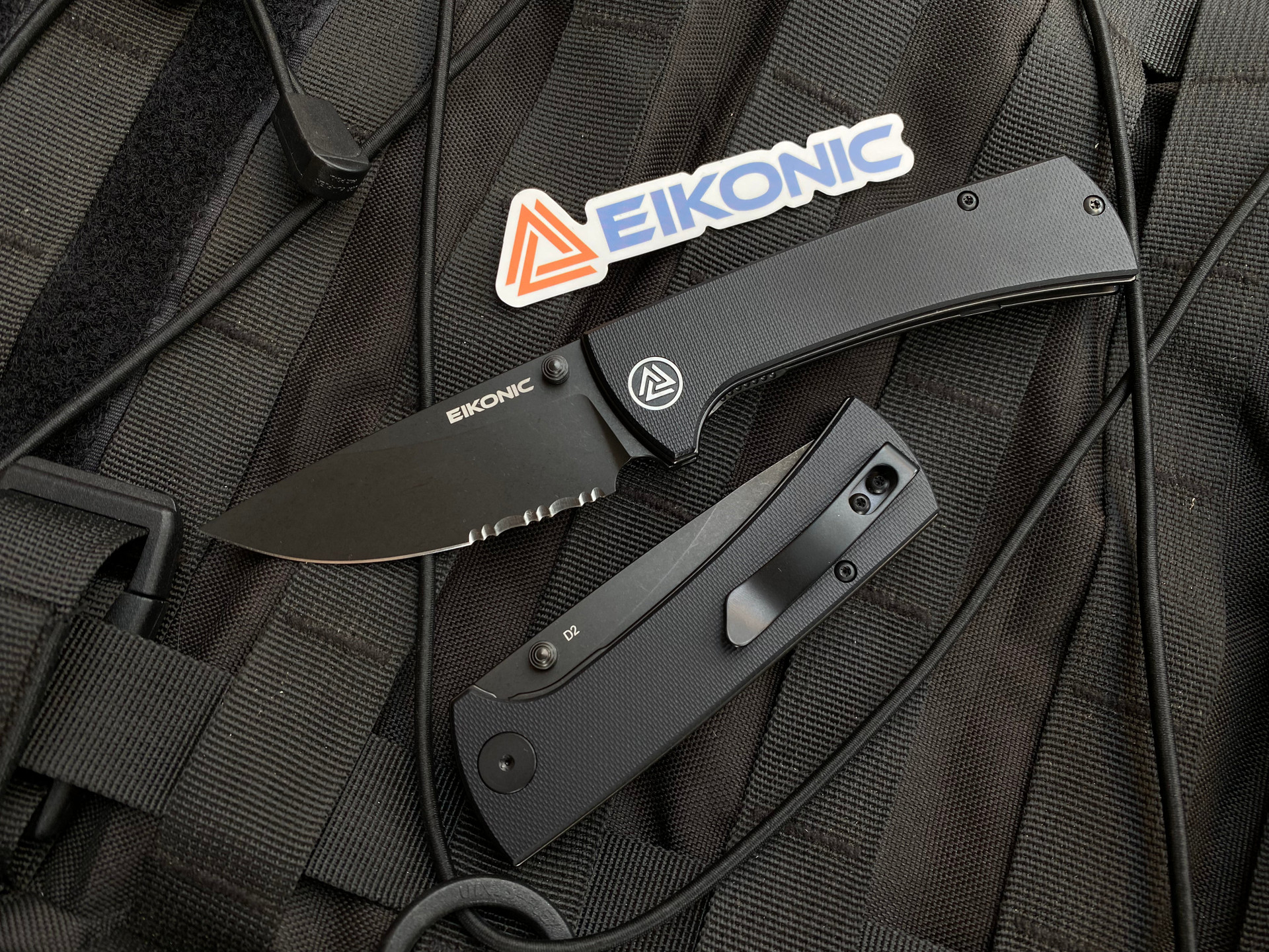 Eikonic RCK9 Folder Black G10 Scales w/ D2 Partially Serrated Blade (2.9”) 100BBS