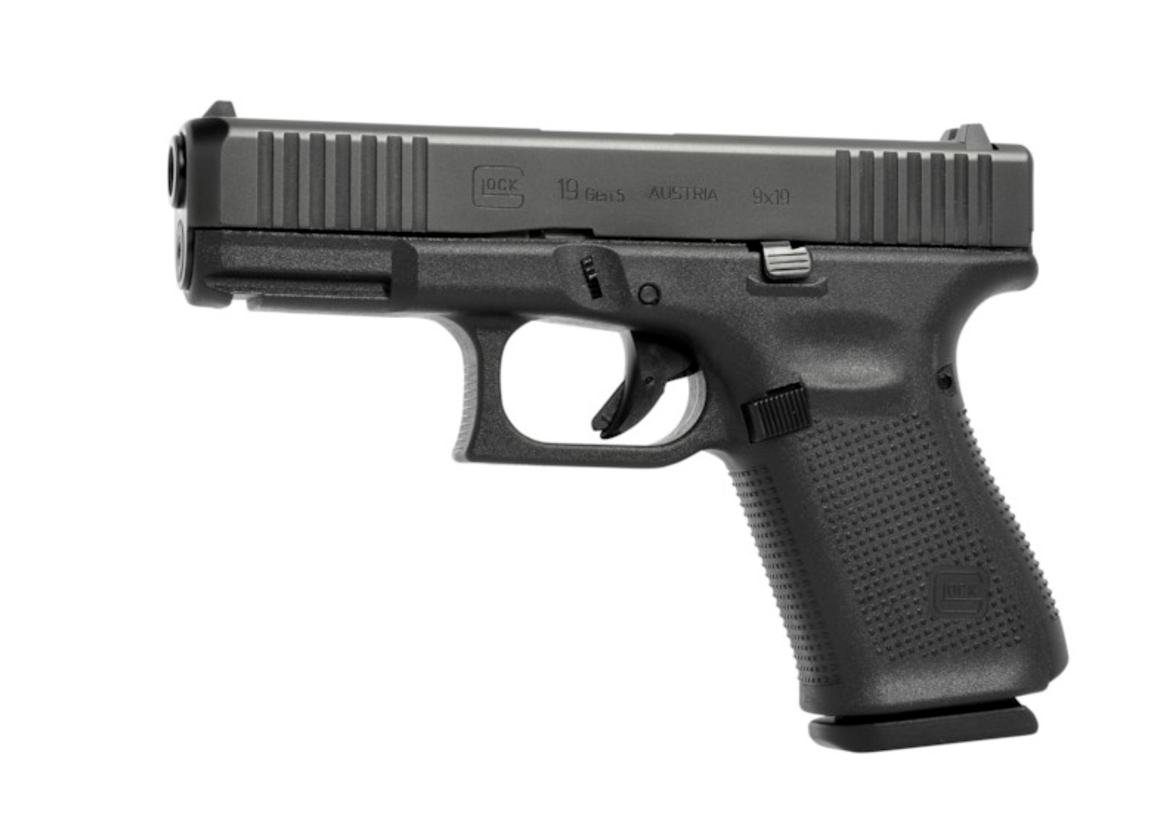The GLOCK 19 Gen5 pistol in 9mm Luger is ideal for a more versatile role due to its reduced dimensions. The new frame design without finger grooves still allows to instantly customize its grip to accommodate any hand size by mounting the different back straps. The reversible magazine catch and ambidextrous slide stop lever make it ideal for left and right-handed shooters. The rifling and the crown of the barrel were slightly modified for increased precision.