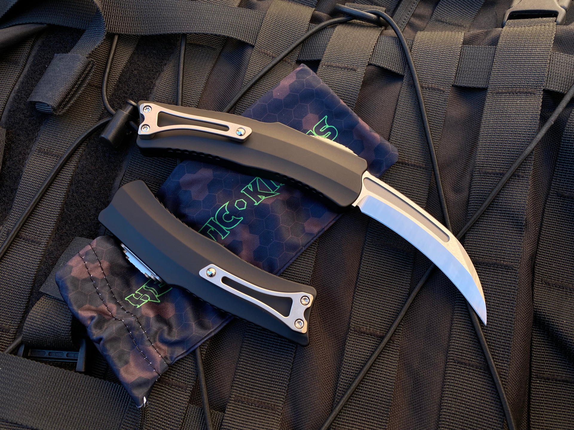 Heretic Knives Roc Auto Curved OTF Black Aluminum Body w/ Satin Plain Edge Blade (3”) H060-1A
