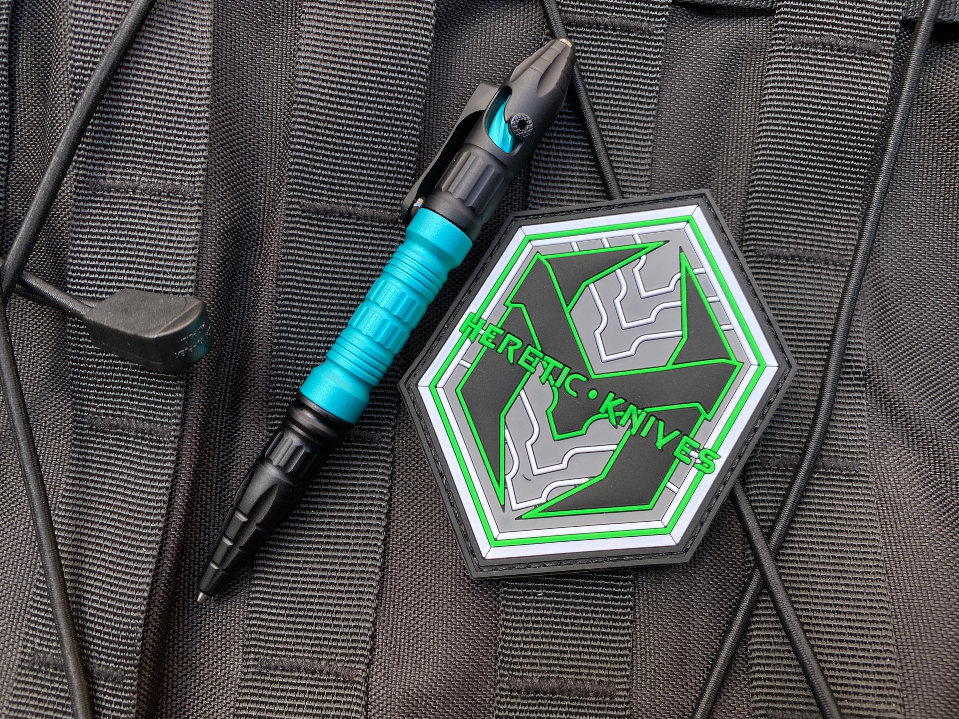 Heretic Knives Thoth Bolt Action Ink Pen Black Anodized Tip and Tails w/ Turquoise Anodized Aluminum Barrel and Bolt H038-AL-TQ
