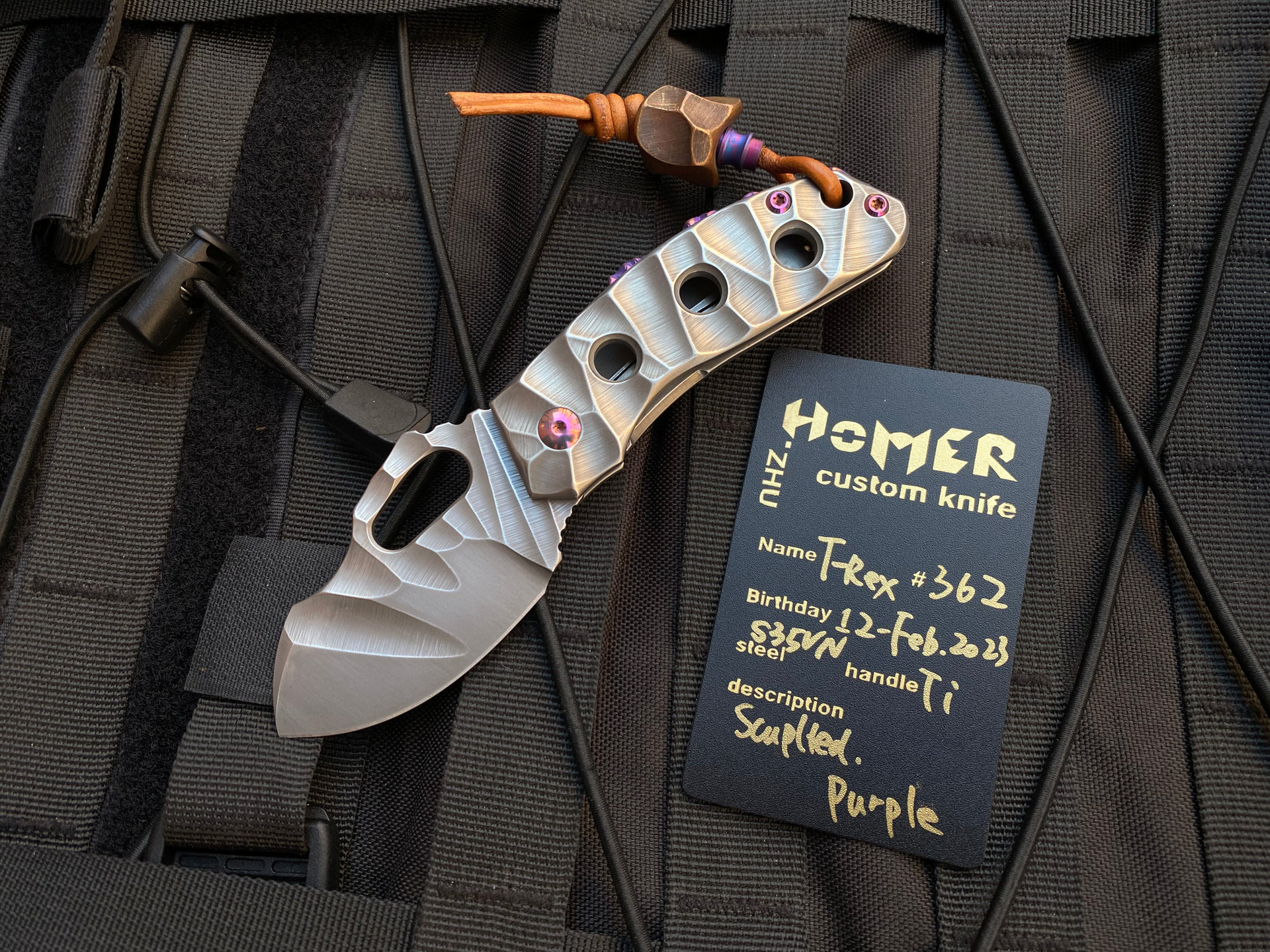 Homer Zhu Custom T-Rex Sculpted Titanium Body w/ Hand Rubbed Sculpted Plain Edge Blade (2.5”) #362