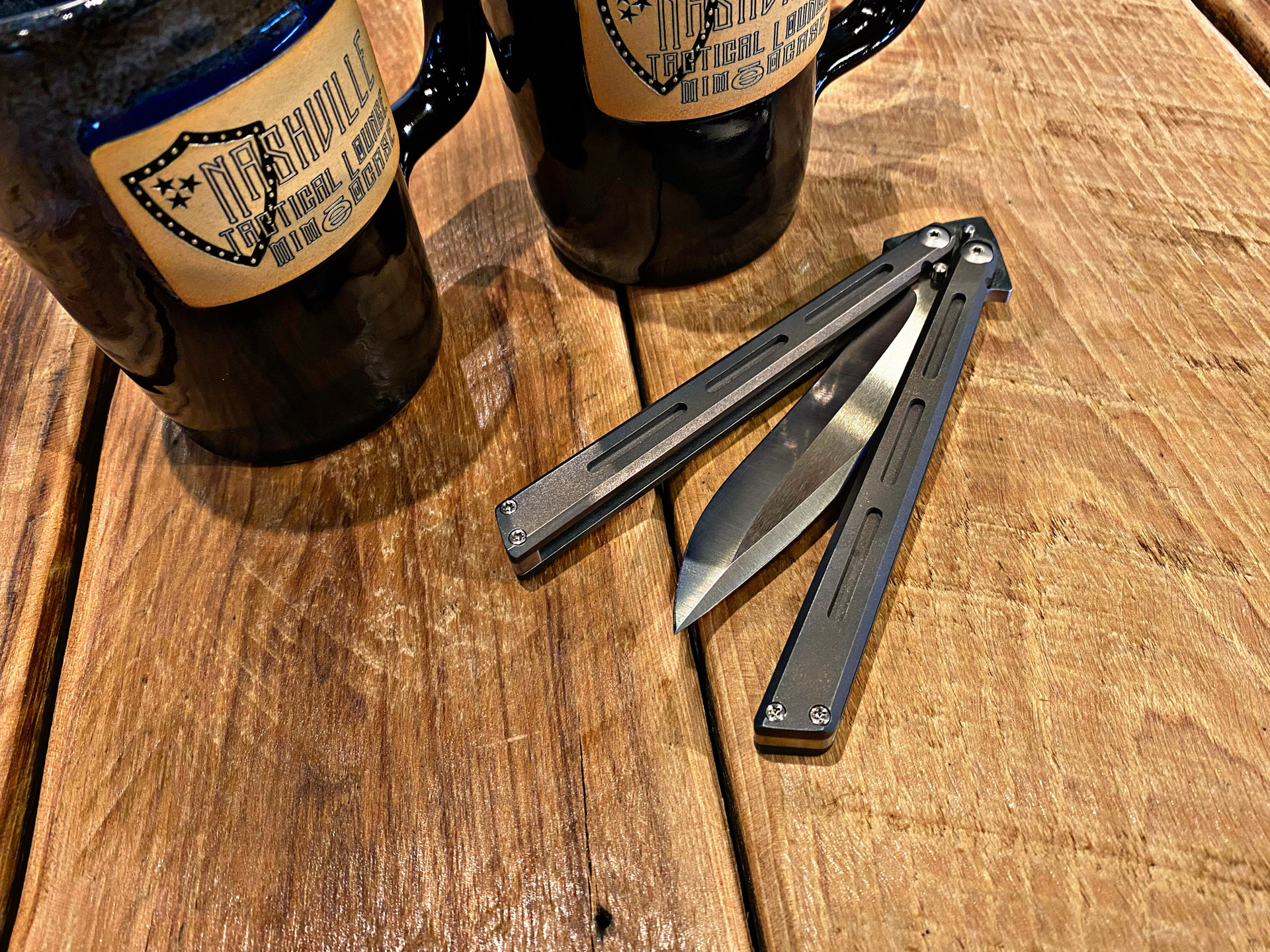 Jim Burke Custom Balisong with Titanium handles with Hand Ground Recurve Blade