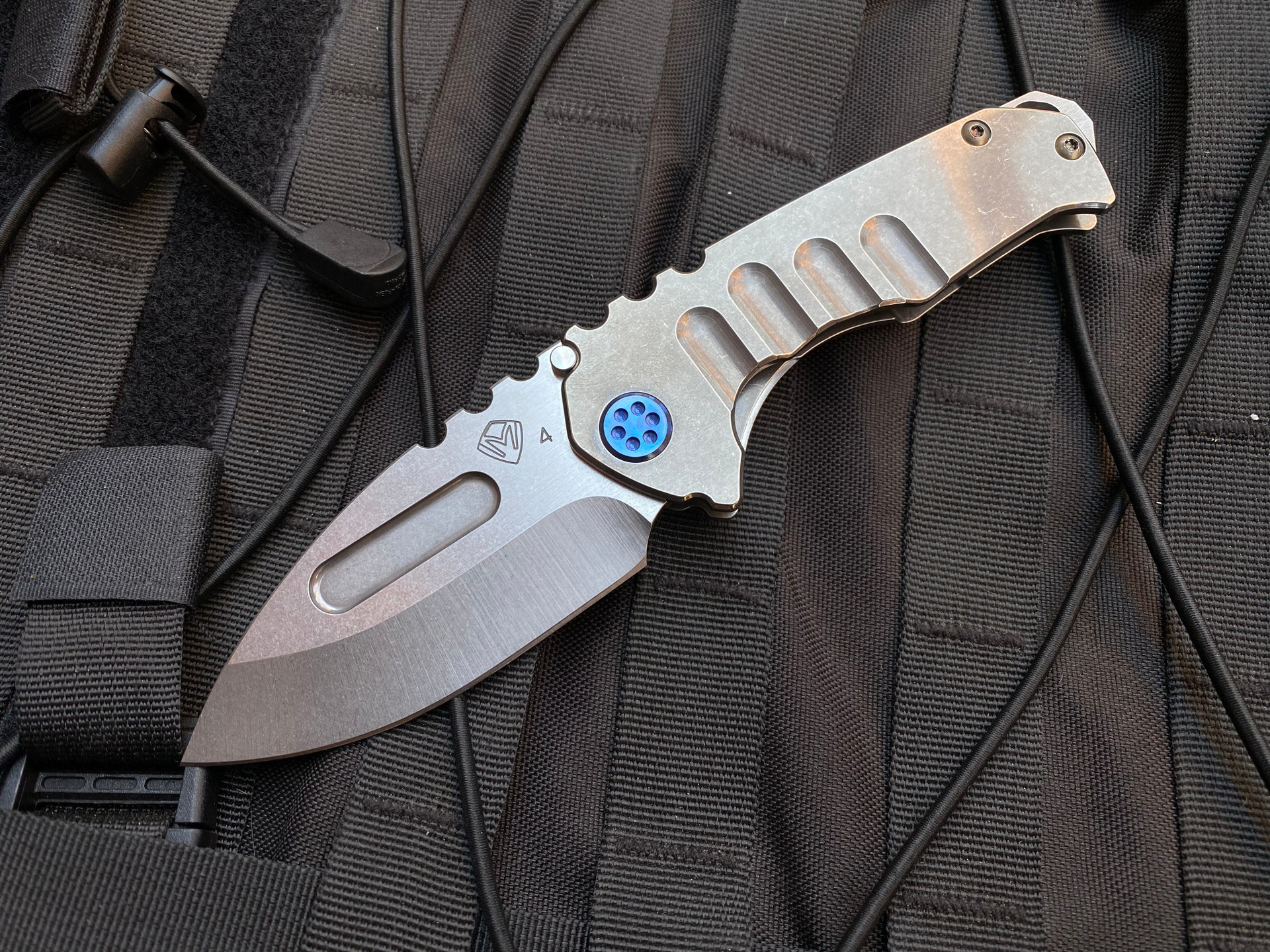 Medford Praetorian Genesis T Tumbled Body and Blue Hardware w/ S45VN Tumbled Plain Edge Blade (3.3”) MK029STD-01TM-T2C2-BN