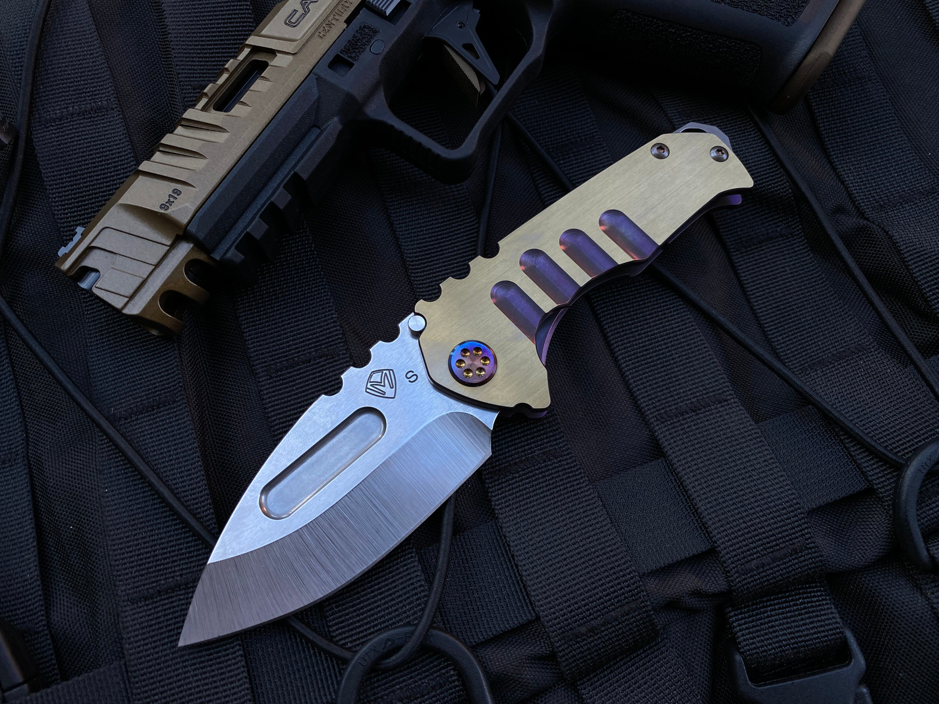 Medford Praetorian Genesis T Violet/Faced Bronzed Flats Titanium Body w/ Flamed Hardware, Clip, and S35VN Tumbled Drop Point Blade (3.3”)