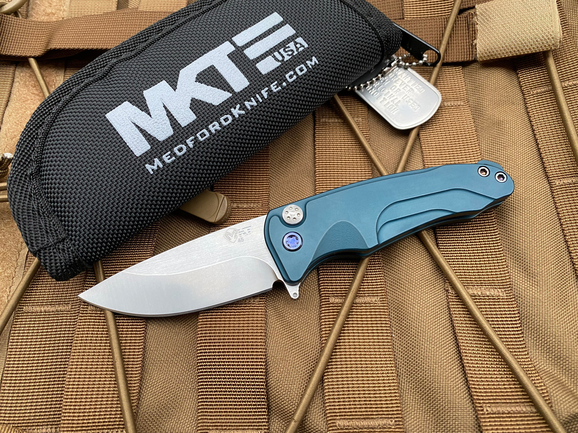 Medford Smooth Criminal Blue Aluminum Body w/ Blue Hardware/Clip and Tumbled Plain Edge Blade (3”)