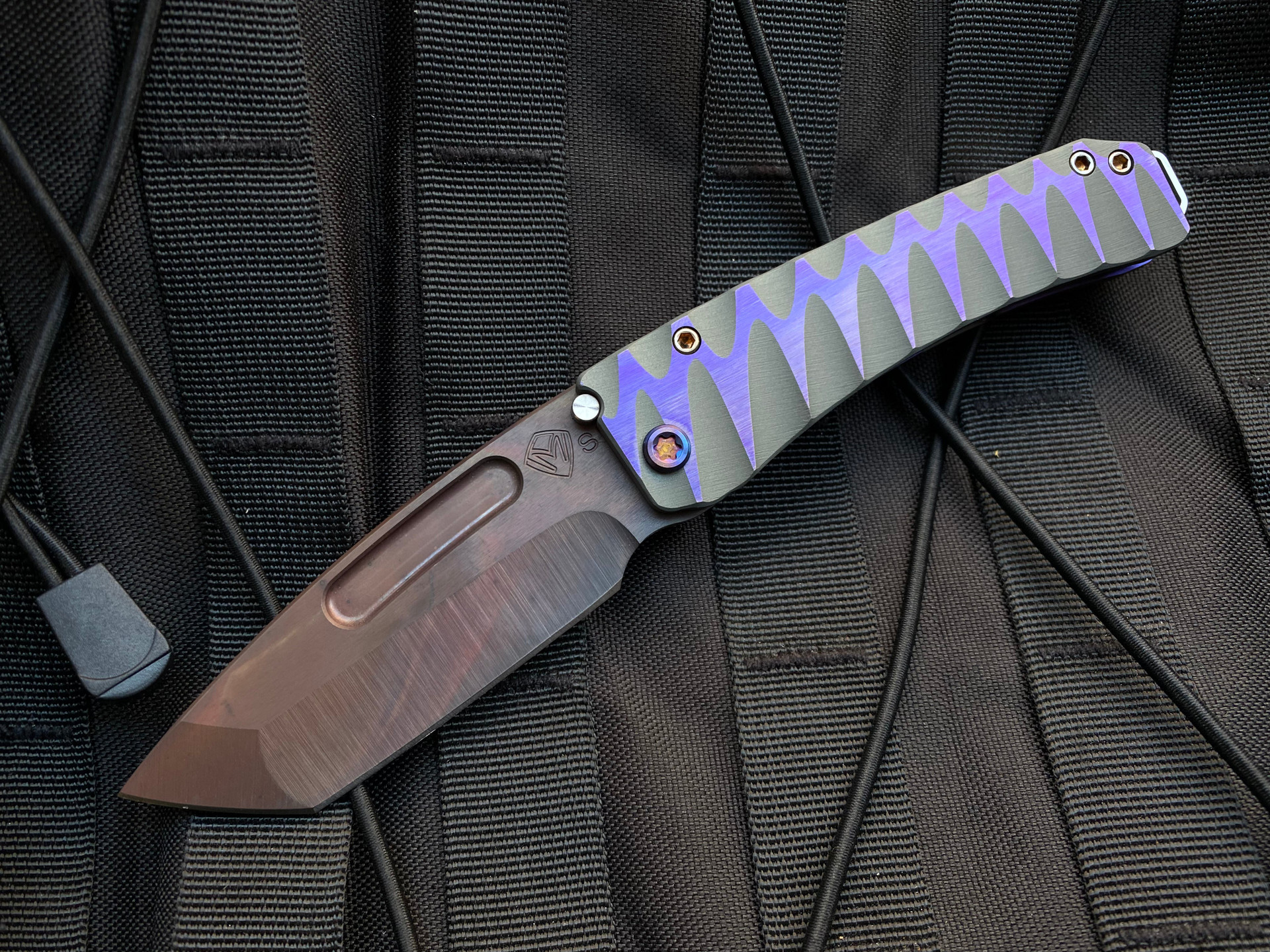Medford Midi Marauder Titanium Folder Cement and Violet Anodized “Lazy River” Handles w/ Flamed Hardware and S35VN Vulcan Tanto Blade (3.25”)