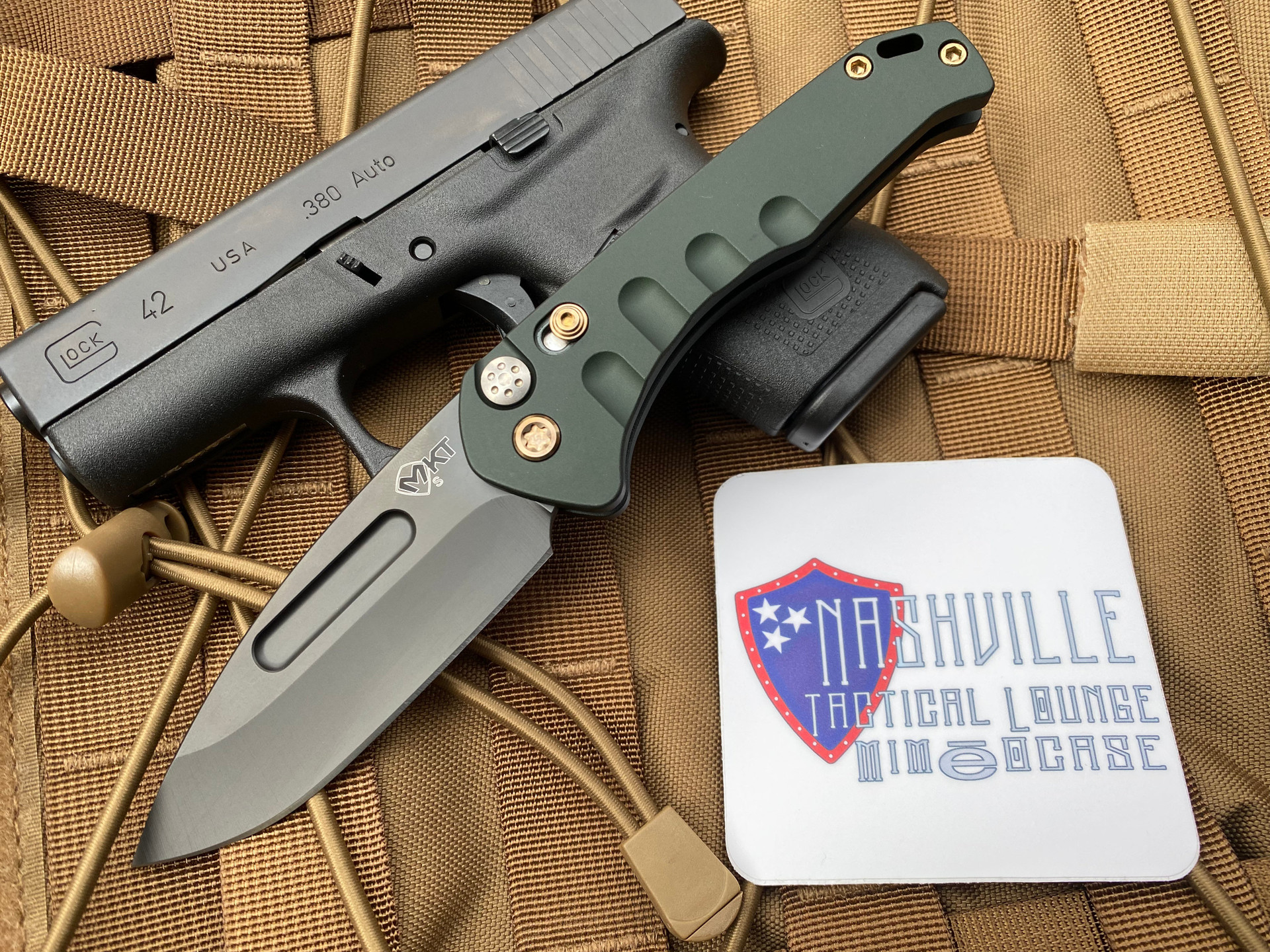Medford Swift Auto Green Body and Bronzed Hardware/PVD Clip w/ S35VN Tumbled Blade (3.375”)
