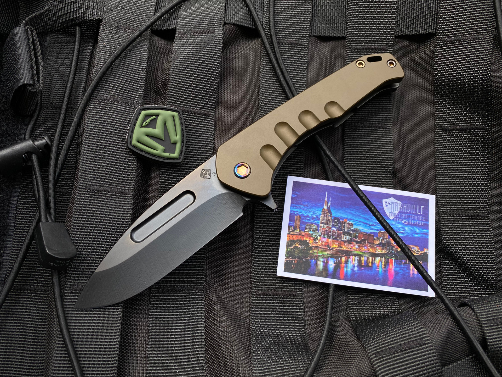 Medford Swift Manual Flipper Yellow Body and Flamed Hardware w/ Drop Point Black PVD S35VN Blade
