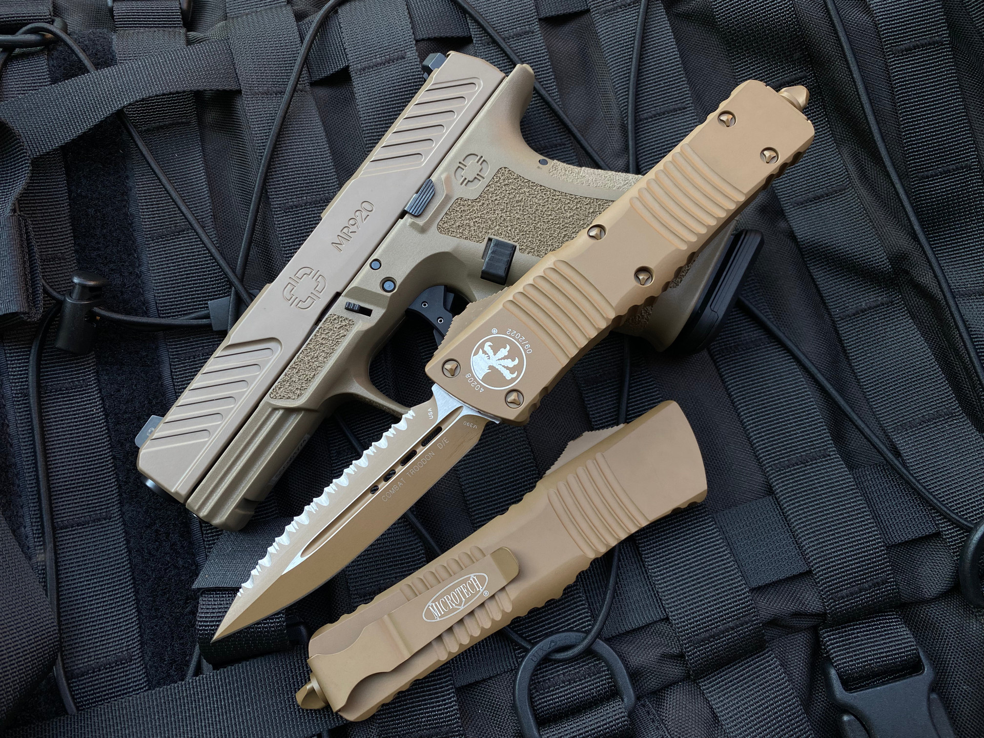 Microtech Combat Troodon D/E Full Tan Cerakote Body w/ Tan Cerakote Full Serrated Blade (3.8”) 142-3CTA