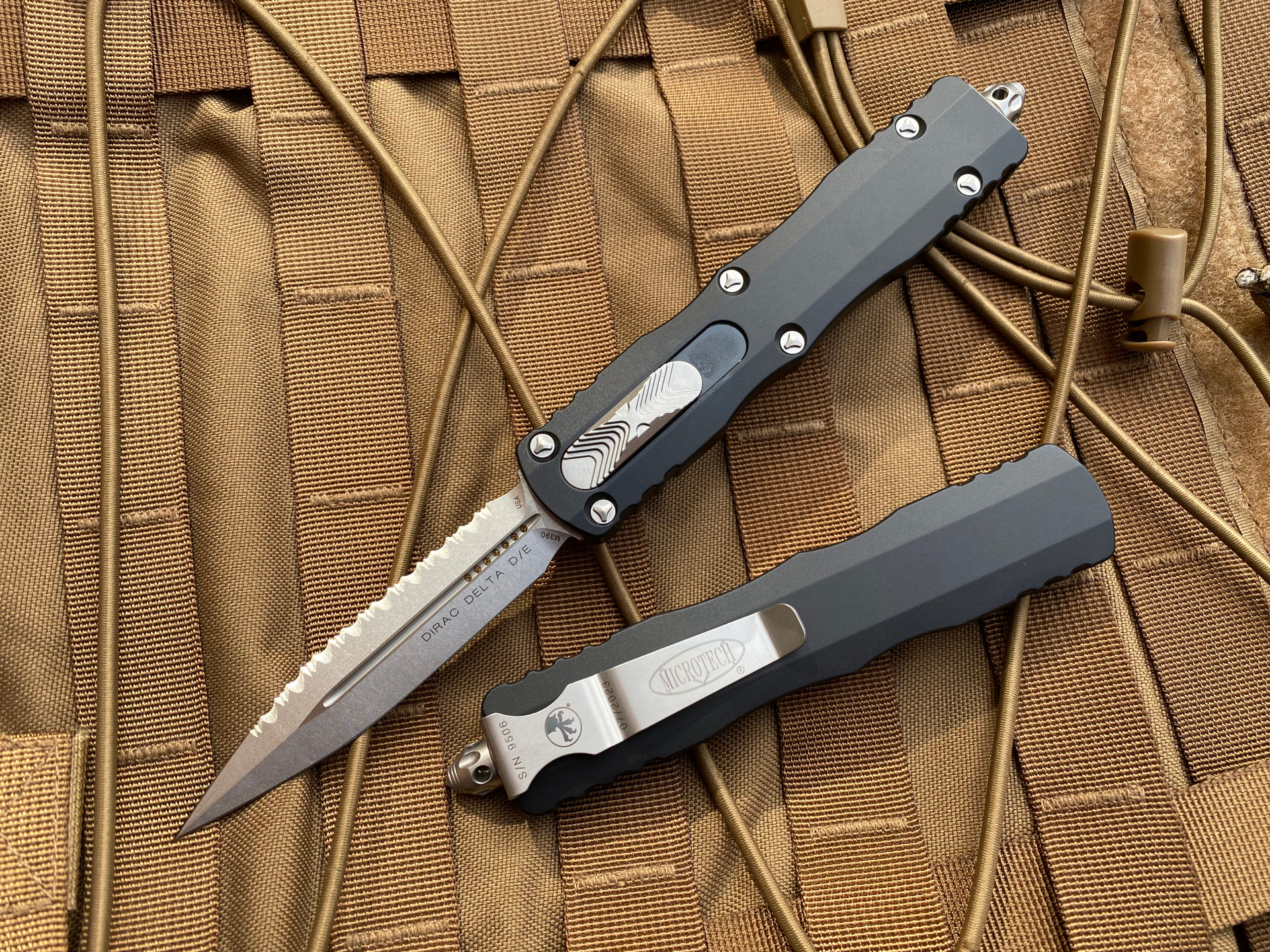 The Microtech Dirac Delta with a fully serrated, double-edge blade is designed to excel in specialized cutting applications. The blade's serrations allow for greater cutting efficiency, particularly through fibrous or tough materials. With its classic black handle and bead blasted hardware, this Dirac Delta combines both aesthetic appeal and practical utility in a single package.