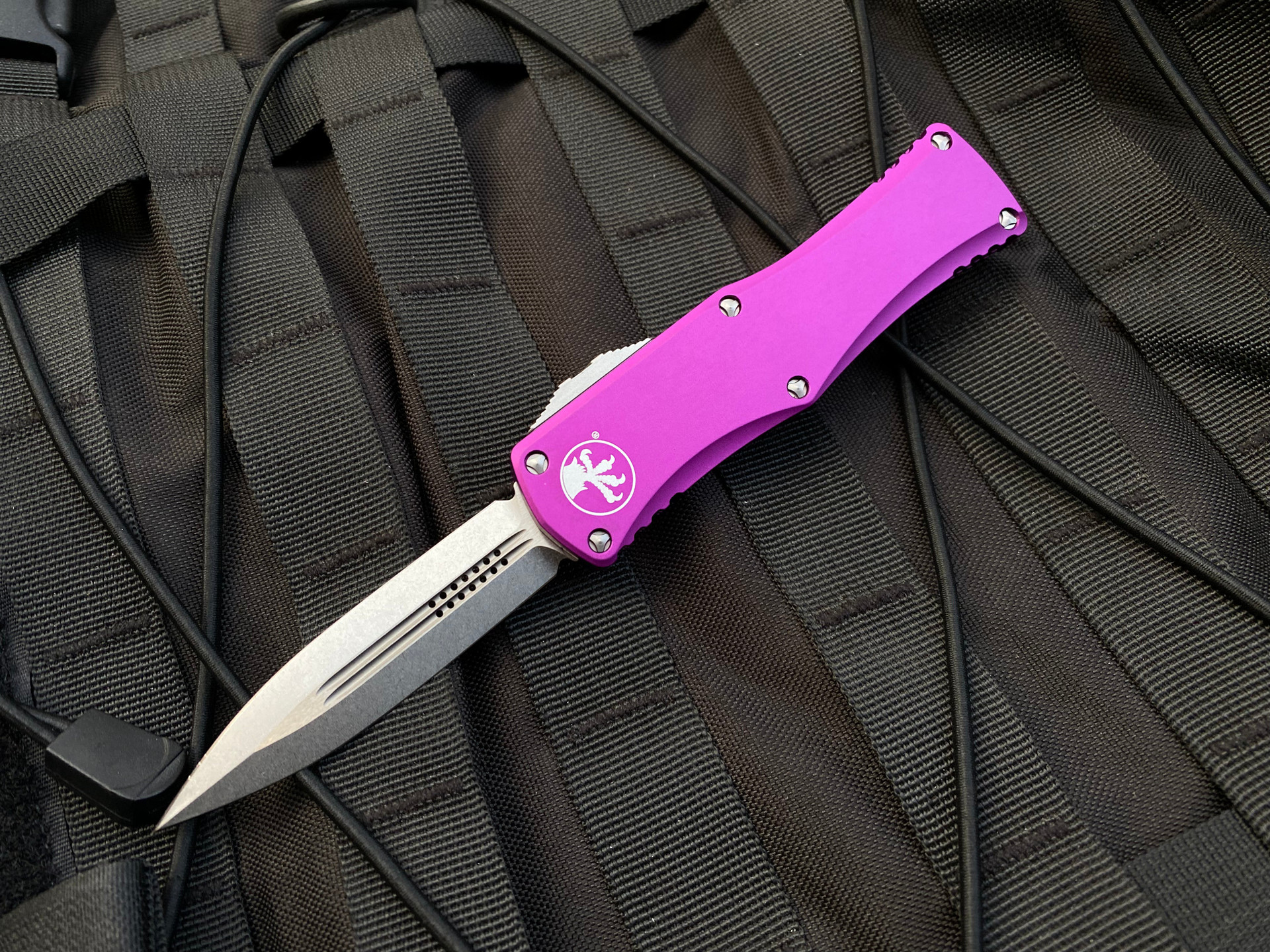 Microtech Hera D/E Violet Aluminum Body w/ Stonewashed Plain Edge Blade (3.08”) 702-10VI