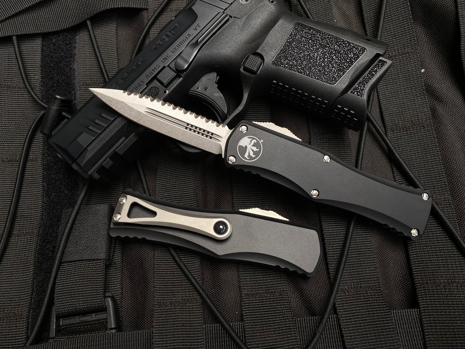 Microtech Hera D/E Black Aluminum Body w/ Stonewashed Full Serrated Blade (3.08") 702-12