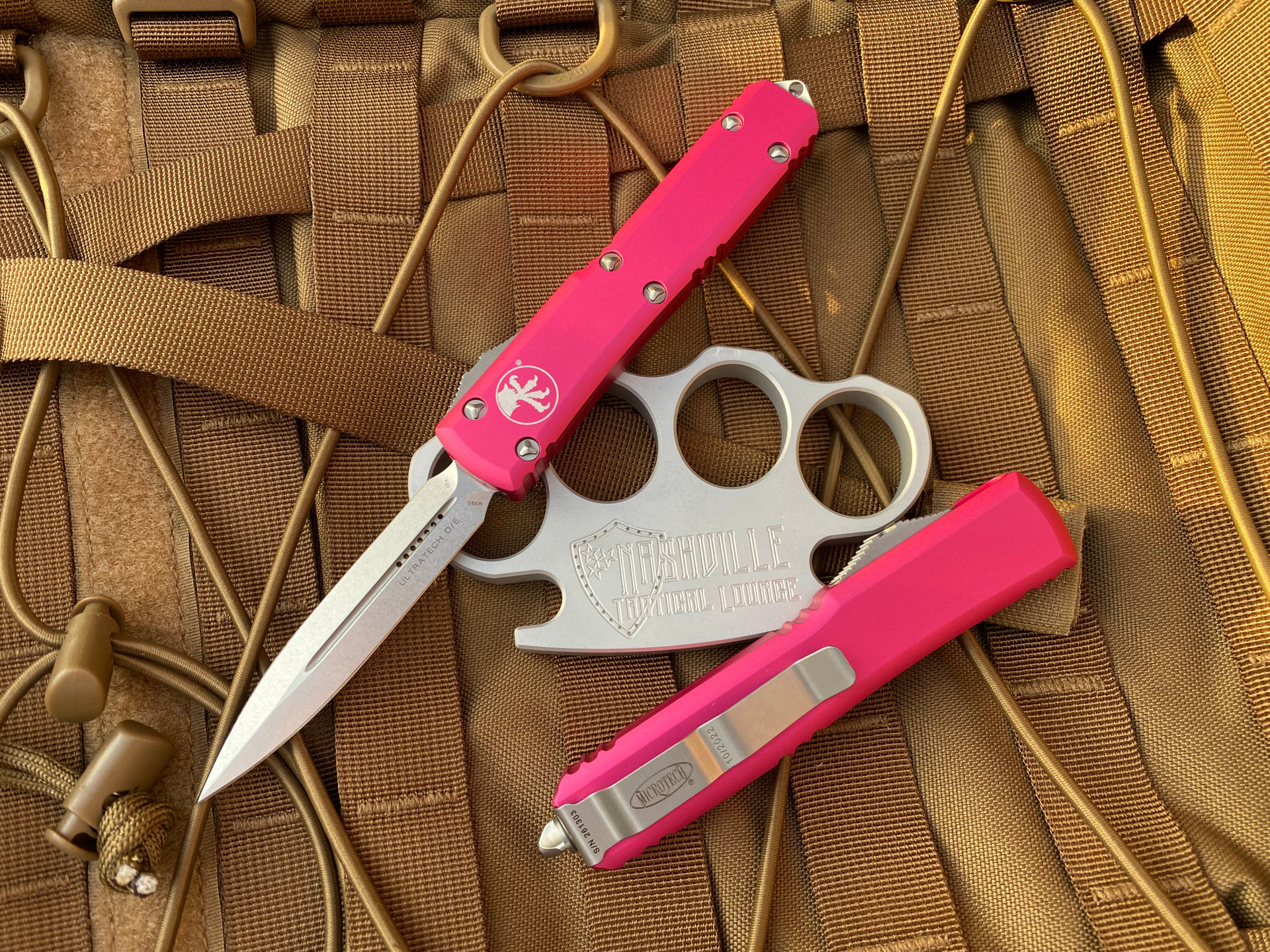 The Microtech Ultratech 122-10PK is an exceptional knife for both everyday carry and tactical use. With its double edge blade and stonewashed finish, it offers versatile cutting power and a rugged aesthetic. The pink body adds a unique, personal touch to this reliable tool.