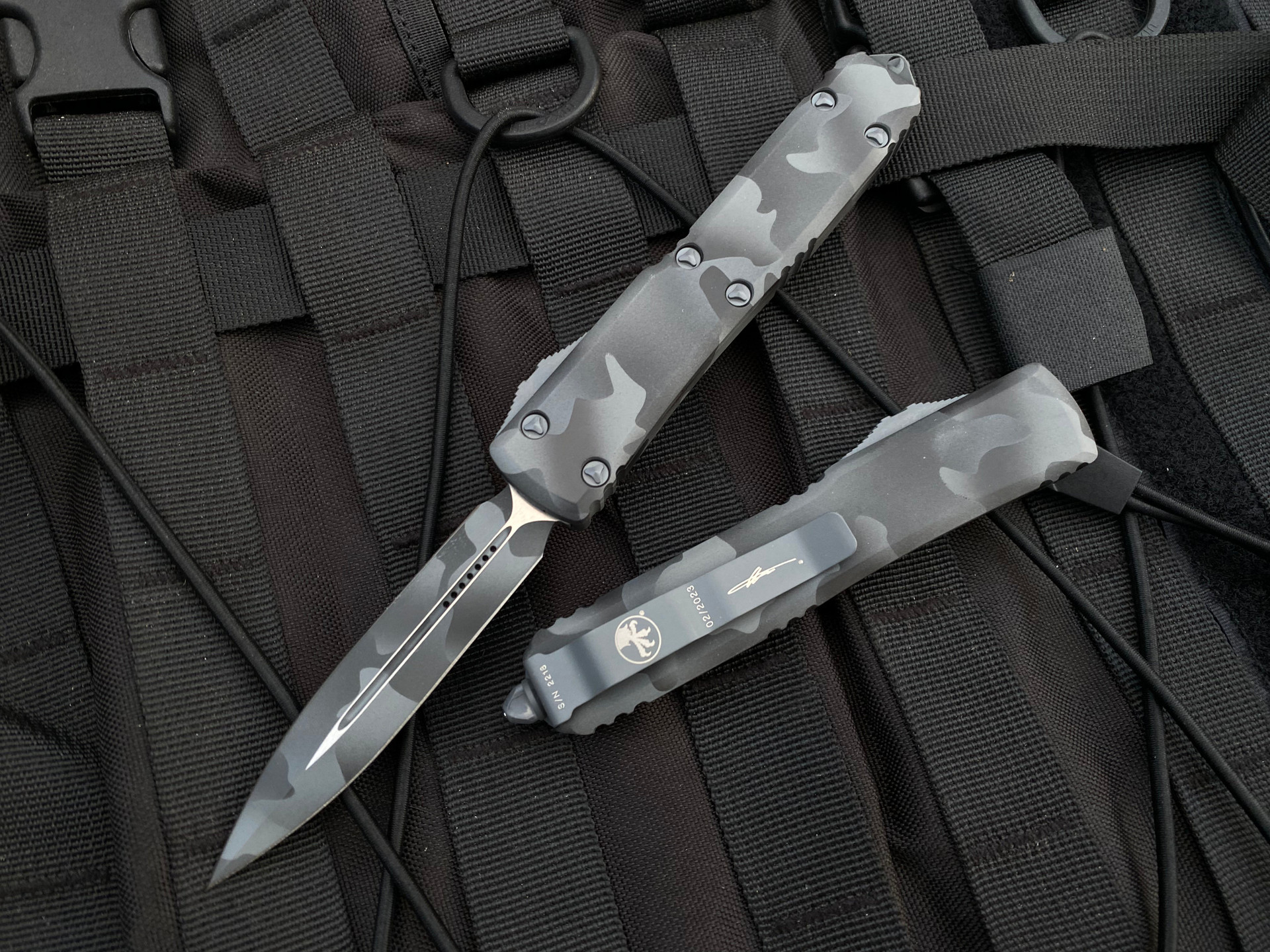 The Microtech Ultratech 122-1UCS is a remarkable tool for both everyday carry and tactical purposes. With its double edge plain blade finished in urban camo, this Ultratech model is as much a visual statement as it is a functional tool. Made in the USA, its quality construction and design cater to a wide range of cutting needs.