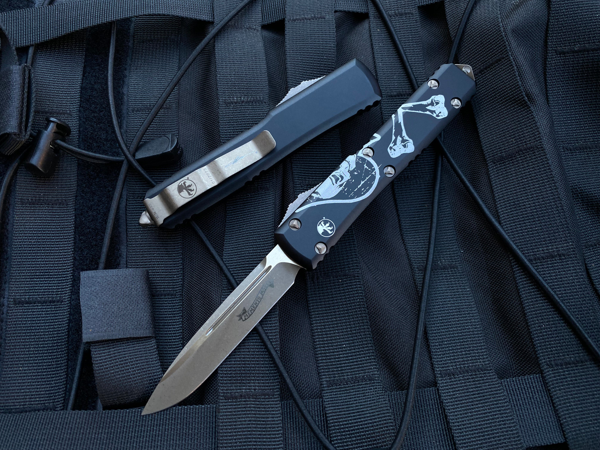 Microtech Ultratech S/E Deathcard Edition Aluminum Body w/ Bronzed Apocalyptic Plain Edge Blade (3.4”) 121-13DCS
