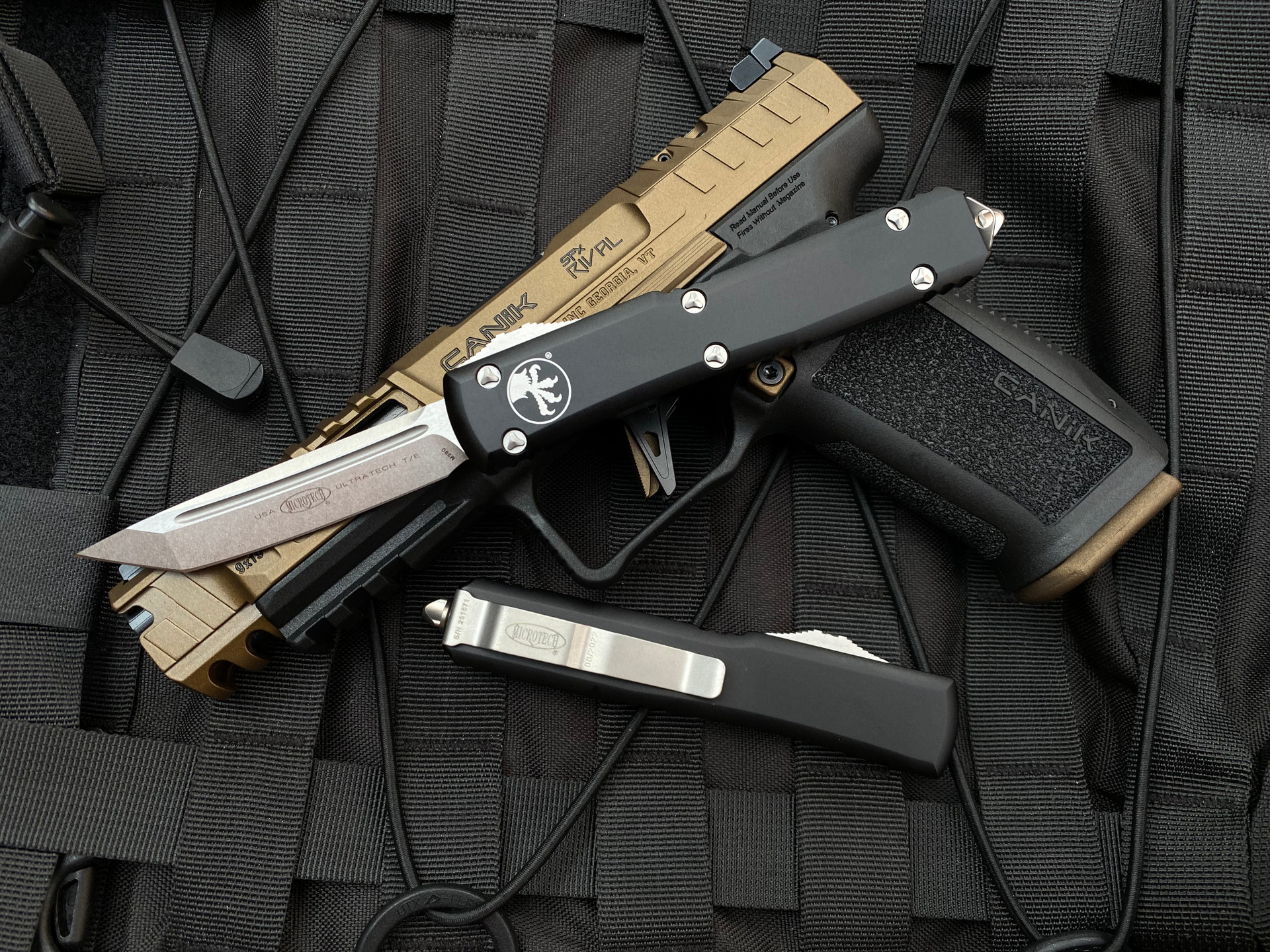 Microtech Ultratech T/E Black Aluminum Body w/ Stoneashed Plain Edge Blade (3.45") 123-10