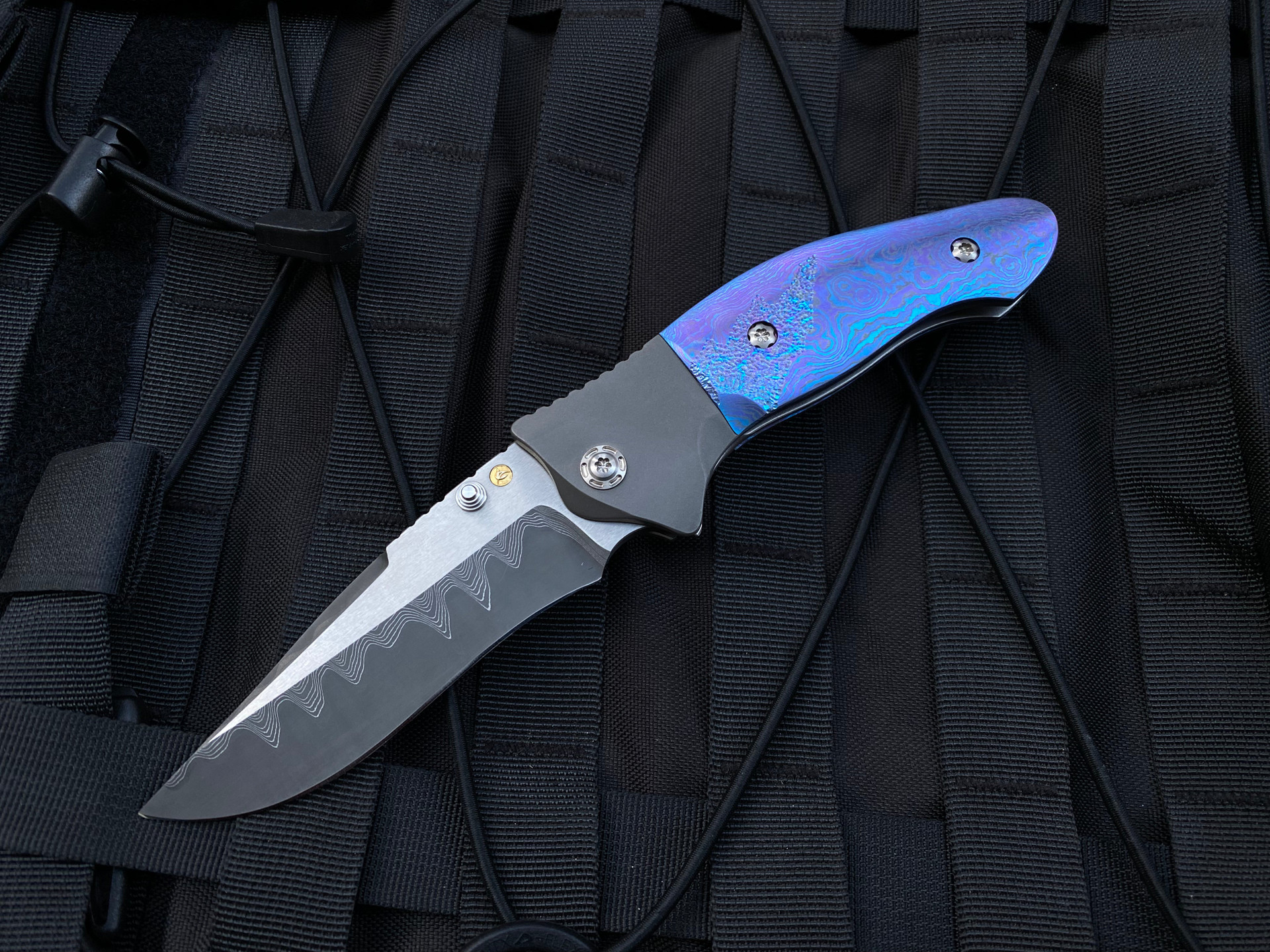 PRE OWNED Allen Elishewitz Custom Folder w/ Timascus Scales and Damascus Plain Edge Blade (4”)