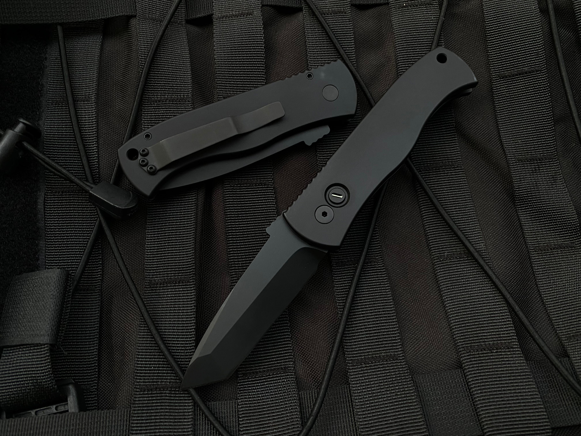 Pro-Tech Emerson CQC7 Operator Auto Folder Black Sterile Aluminum Body w/ Tritium Button and Black Chisel Grind Tanto Blade (3.25”) E7T OPERATOR