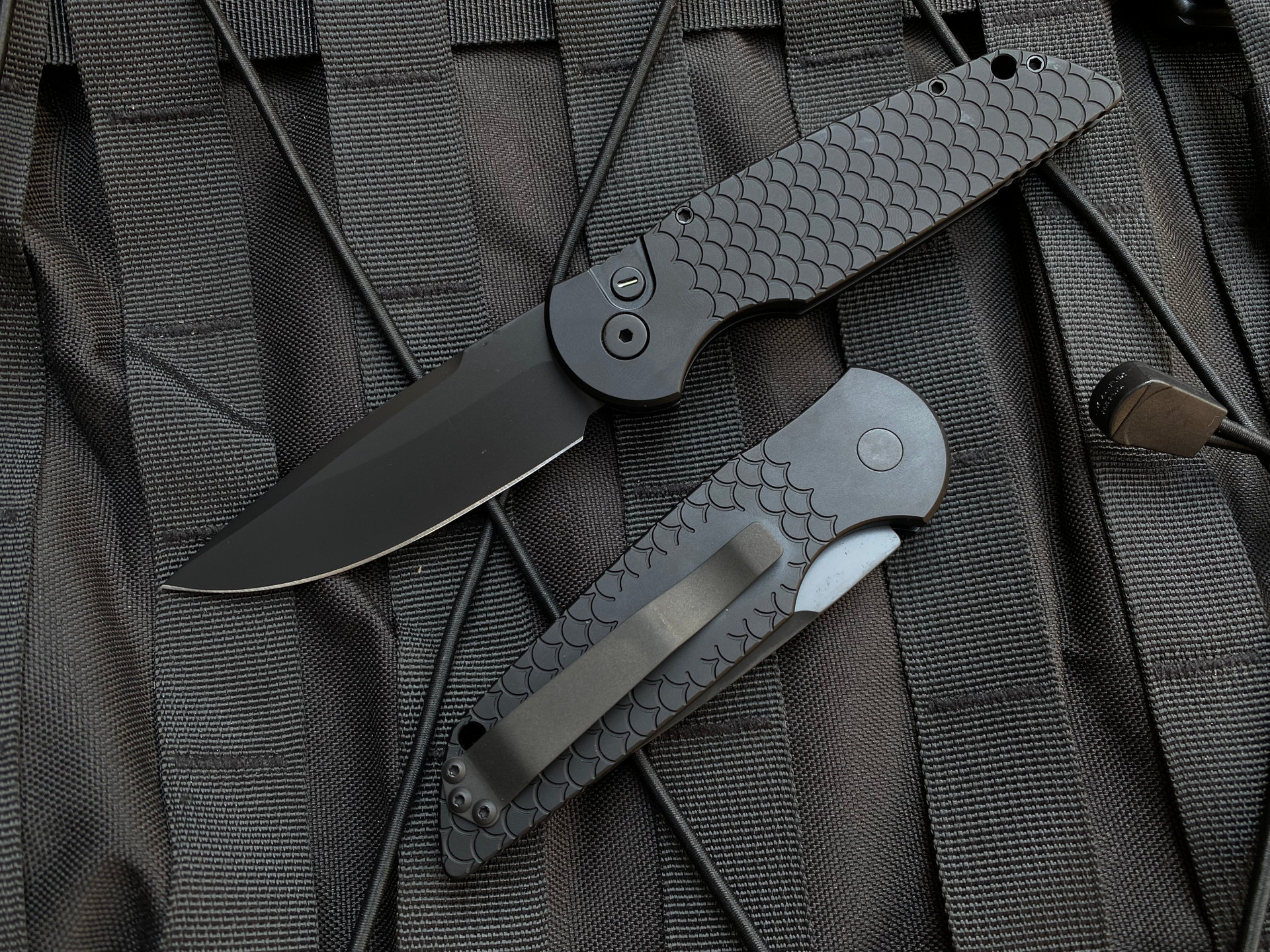 Pro-Tech TR-3 X1 Operator Auto Folder Black Fish Scale Handles w/ Sterile Black Clip Point Blade (3.5”)