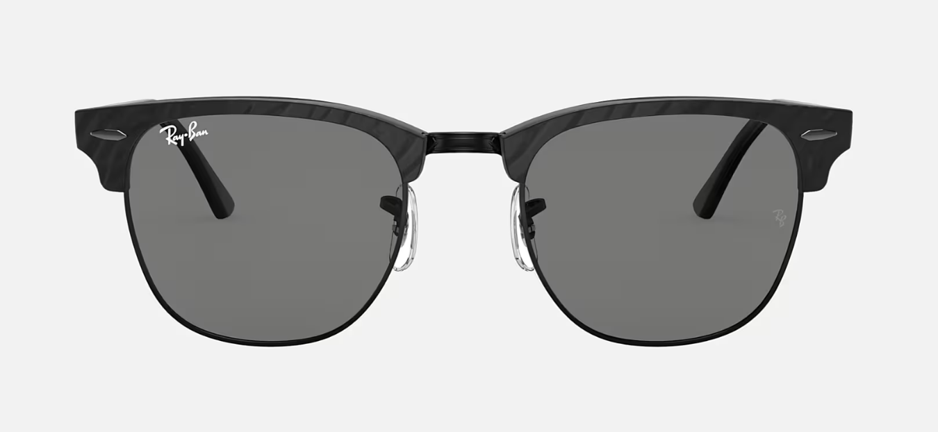 The Ray-Ban Clubmaster Wrinkled Black Frame, Dark Grey Lenses RB3016 1305/B1 sunglasses are a stylish and timeless accessory to elevate your look. These sunglasses feature a distinctive Clubmaster design with a wrinkle effect on the black frame, complemented by dark grey lenses for a sleek finish. The RB3016 1305/B1 model offers 100% UV protection and comes from the renowned RAY-BAN brand. Perfect for both men and women, these RayBan Clubmaster sunglasses are a must-have for anyone looking to make a fashion statement. Explore our 'Shop All' category for more Ray-Ban sunglasses and accessories.