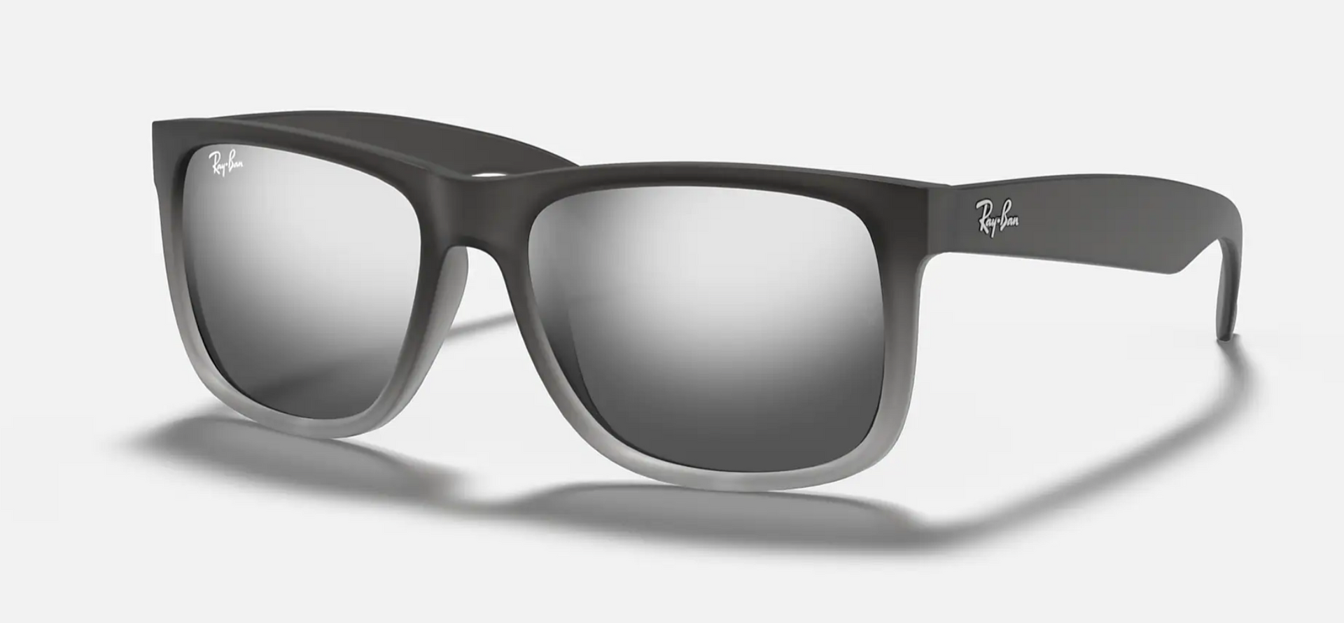 Experience ultimate style and protection with the Ray-Ban Justin Sunglasses in Rubber Grey on Clear Grey Frame. These iconic sunglasses feature Grey Mirror Silver Gradient Lenses, providing a sleek and contemporary look. The RB4165 852/88 model offers 100% UV protection and a durable frame for long-lasting wear. Perfect for both casual and formal occasions, these sunglasses elevate your style while shielding your eyes from harmful sun rays. The RayBan Justin Sunglasses are a must-have accessory for fashion-forward individuals. Shop all Ray-Ban sunglasses for a wide range of trendy and high-quality eyewear options. Manufactured by the renowned RAY-BAN brand.