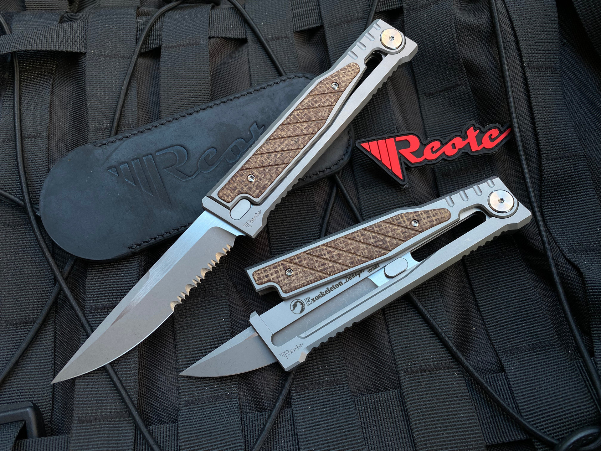 Reate Knives EXO Titanium Burlap Micarta Inlay w/ Stonewashed Drop Point Partially Serrated Blade (3.75”)