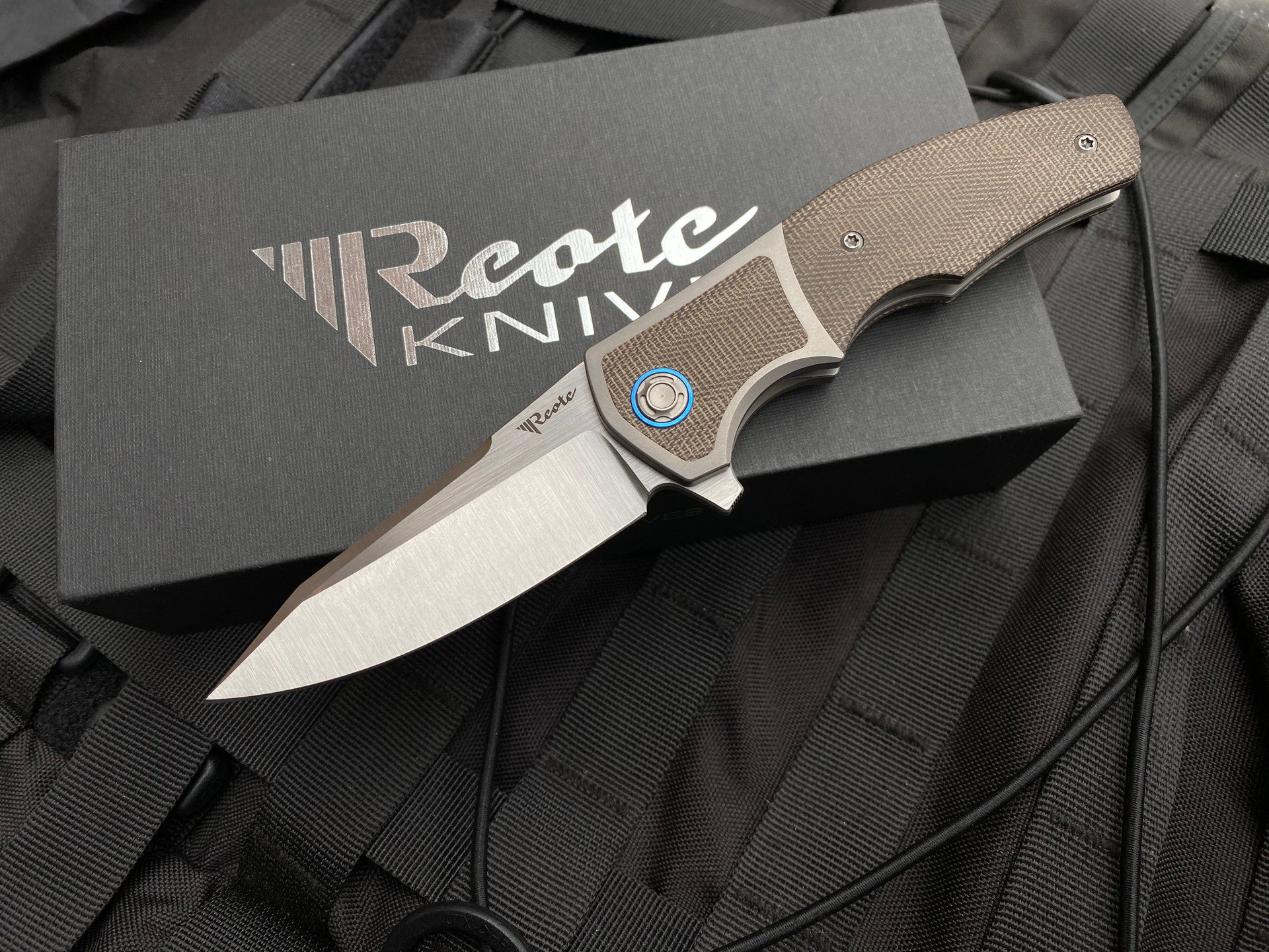 Reate Mini Crossroads Limited Edition Titanium Body w/ Green Micarta Inlays and M390 Satin Plain Edge Blade (3.3”)