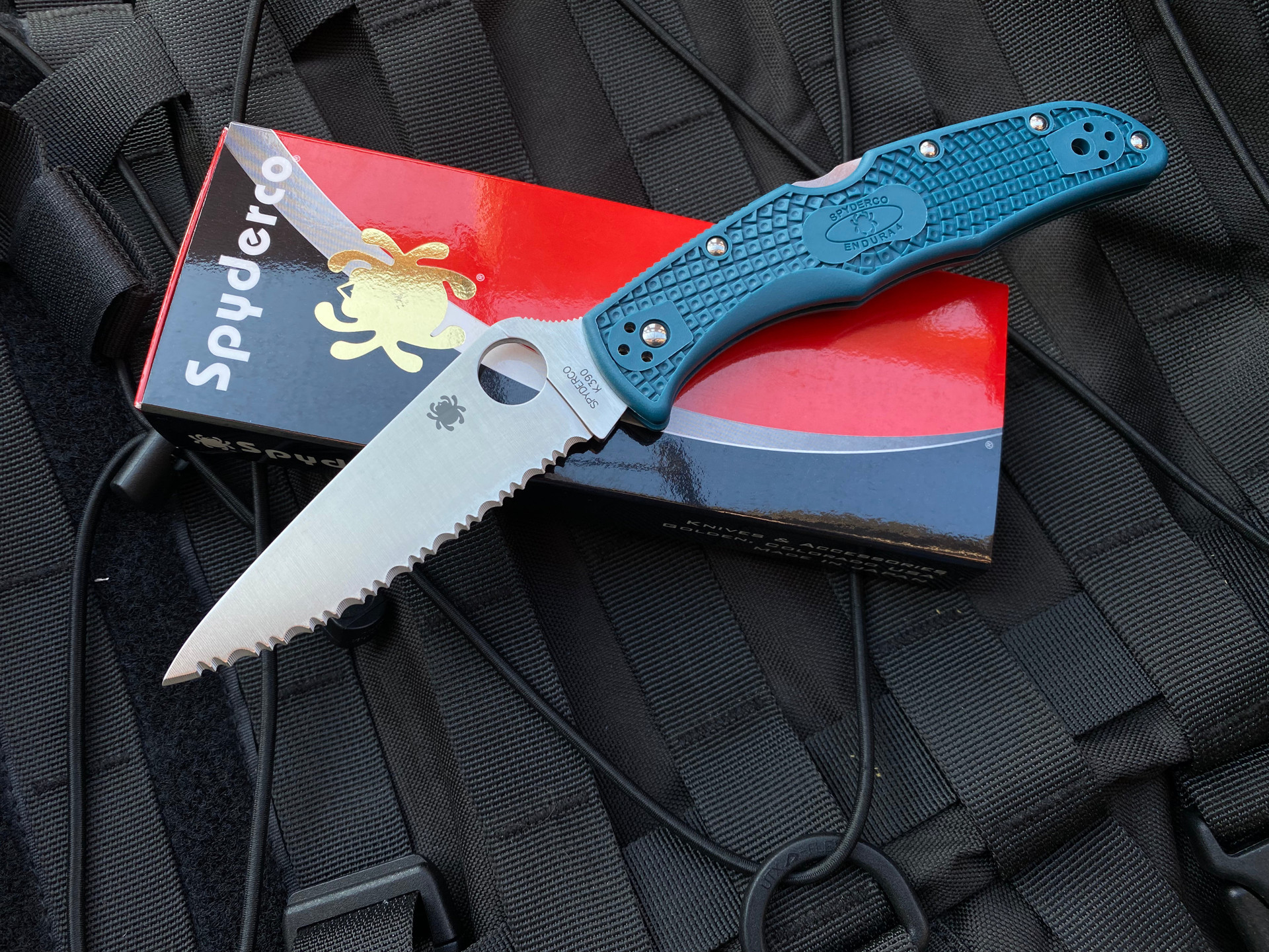 Spyderco Endura Folder Blue FRN Scales w/ K390 Full Serrated Satin Blade (3.8”) C10FSK390