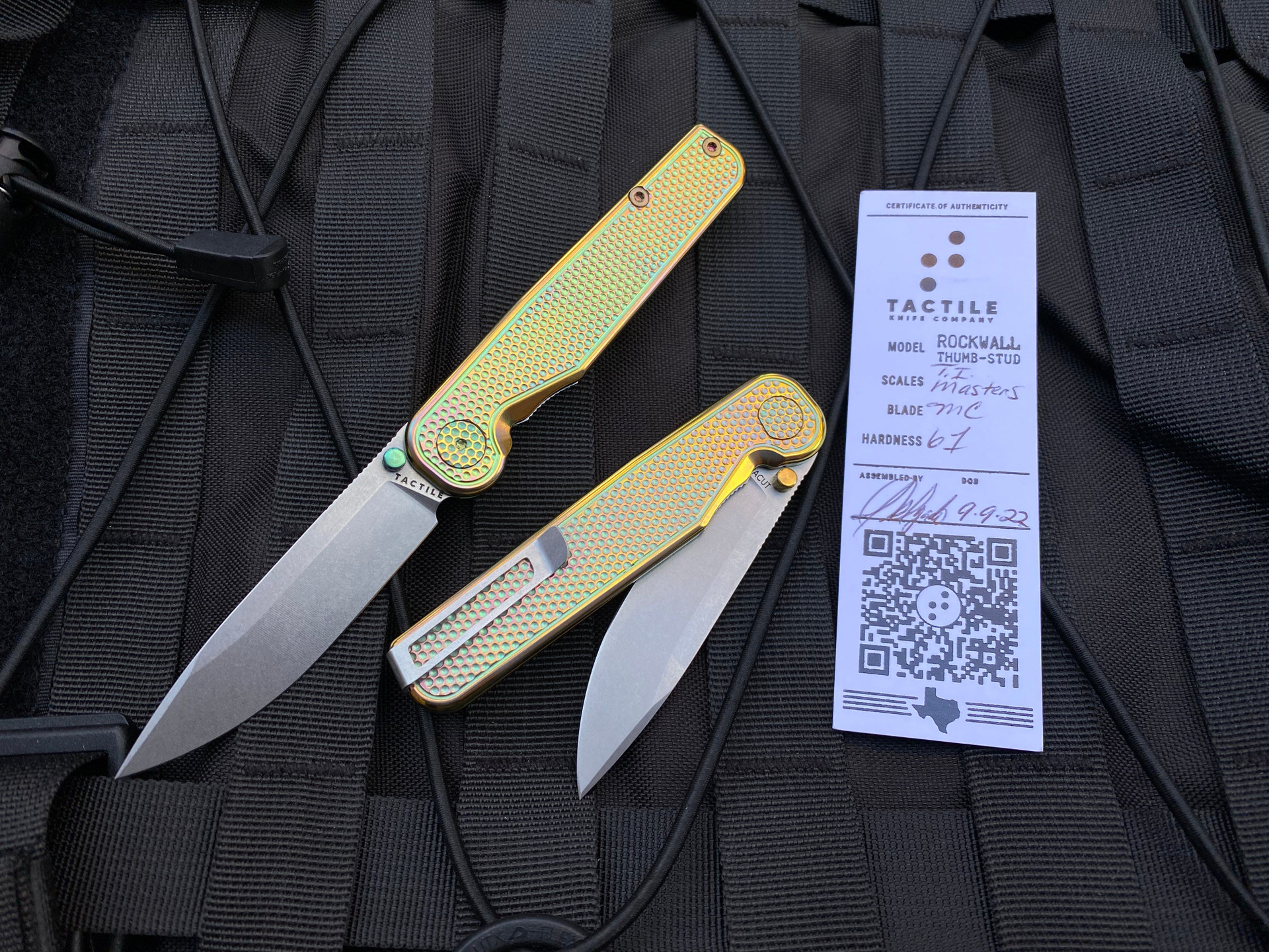 Tactile Knife Co Rockwall Golf Pattern Anodized Titanium Folder w/ Magnacut Stonewashed Plain Edge Blade (2.84”)
