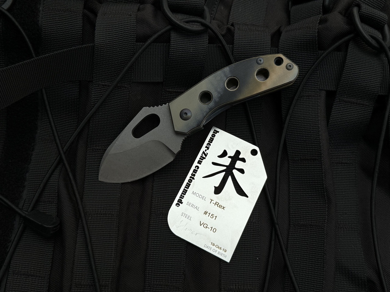 RARE PRE-OWNED Homer Zhu Custom T-Rex Folder Camo G10 Body w/ VG10 Stonewashed Plain Edge Blade (2.5") #151