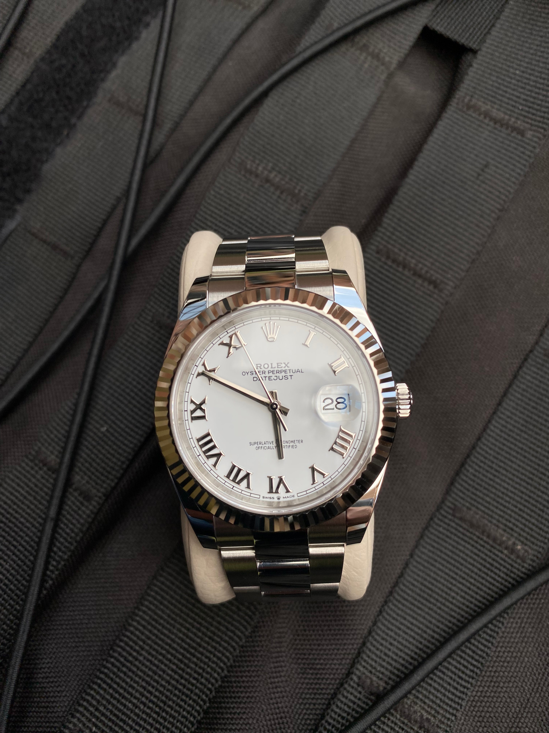 Material: The 126334 typically features a stainless steel case and bracelet, known as the Oystersteel. Oystersteel is a corrosion-resistant and highly durable material unique to Rolex.