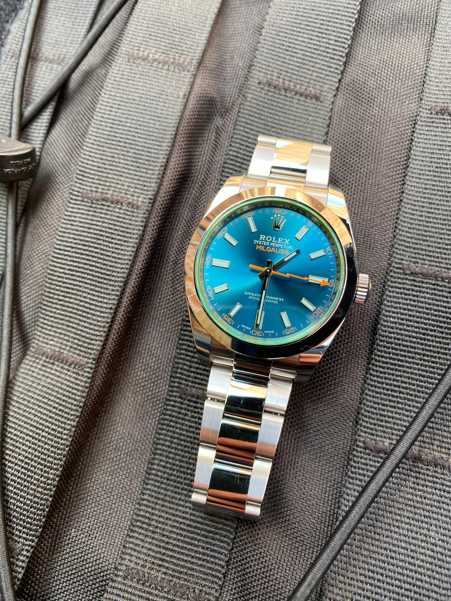 The Milgauss collection was originally designed for professionals working in high magnetic fields, and the 116400GV lives up to this legacy with its impressive antimagnetic properties. It can withstand magnetic fields up to 1,000 gauss, thanks to its Parachrom hairspring and special shielding in the case.