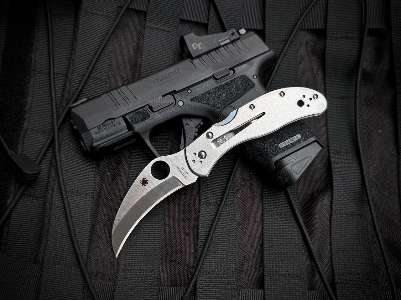 Like an animal’s claw, hawkbill blades pierce with the point and draw the material being cut into the natural curve of the edge. Spyderco’s Harpy® was the first knife to integrate the dynamics of the hawkbill profile with the voracious cutting power of our fully serrated SpyderEdge™. Also available in a PlainEdge™ configuration, its hollow-ground VG-10 stainless steel blade cuts with authority far beyond its size and is ideal for cutting netting, rope, cord, and webbing. Symmetrical and fully ambidextrous, the Harpy’s stainless steel handle features a sturdy back lock mechanism, a four-position clip, and a drying vent/shackle key. It has also been updated to screw-together construction to allow precise adjustment and easier maintenance.