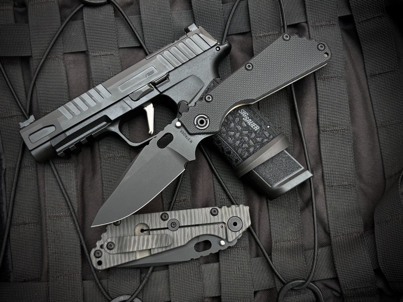 Strider SmF Folder Flamed Titanium and Black G10 Body w/ Magnacut Black Plain Edge Blade