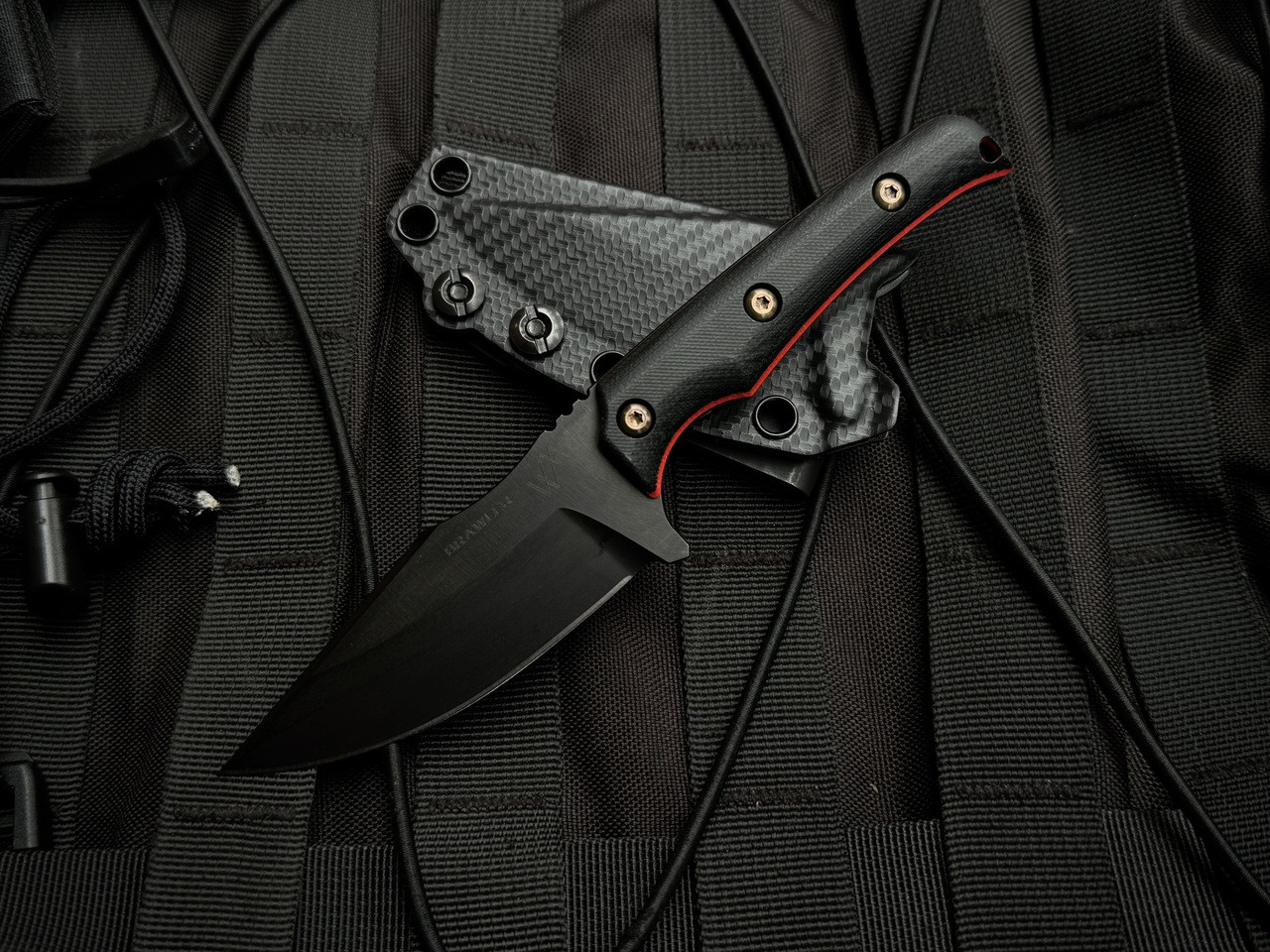 WelMade Brawler Fixed Blade Black/Red G10 Handles w/ Bronzed Titanium Hardware and 154CM Black PVD Plain Edge Blade (3")